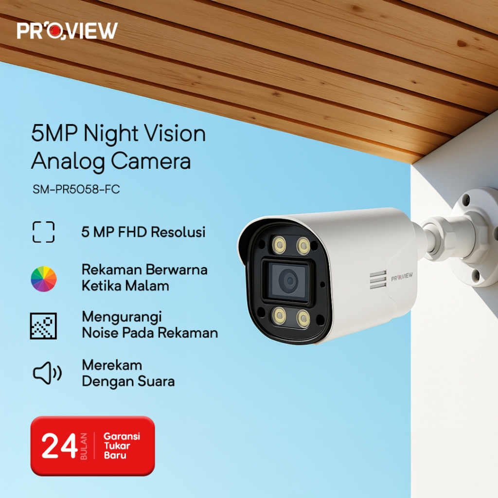 PROVIEW CCTV Outdoor Analog SM-PR5058-FC 5MP 1080p HD IP66 Waterproof Night Vision Rekam Suara