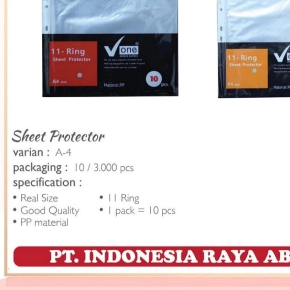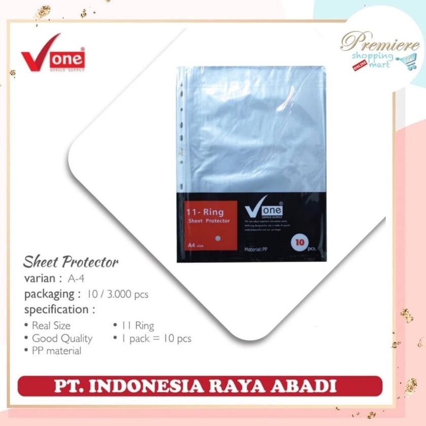 PSM - Sheet Protector A4 - F4 Tebal Merek V ONE File Folder Plastik Binder 11 Ring - Isi 10pcs