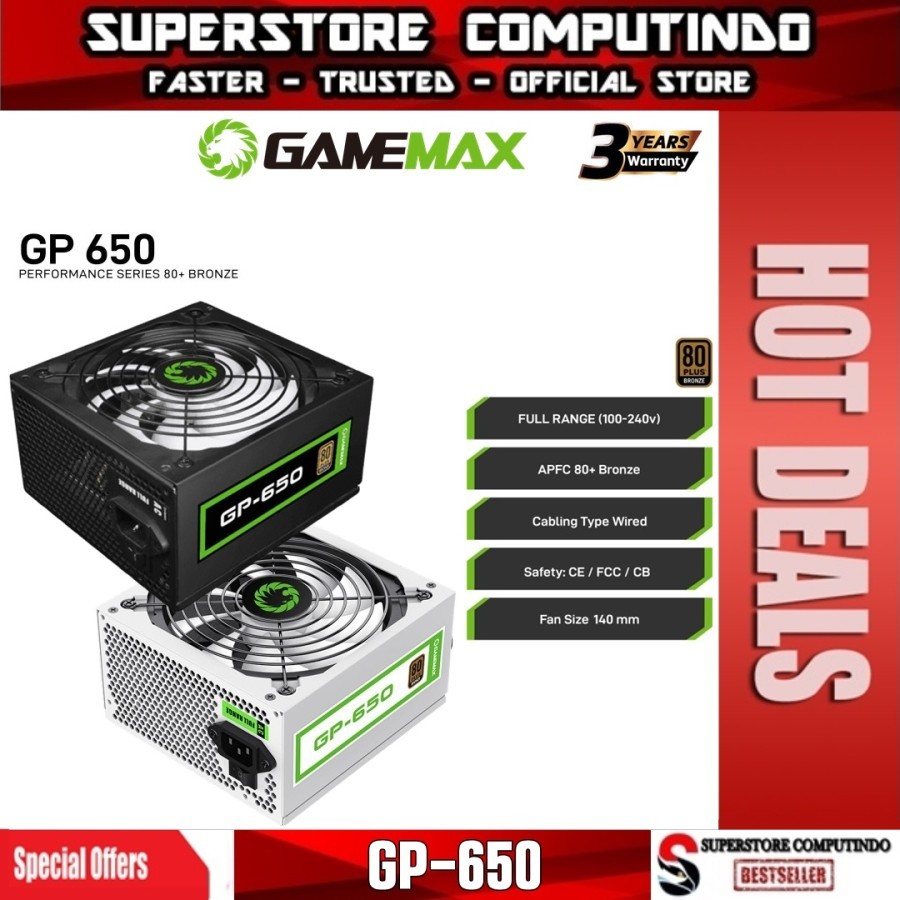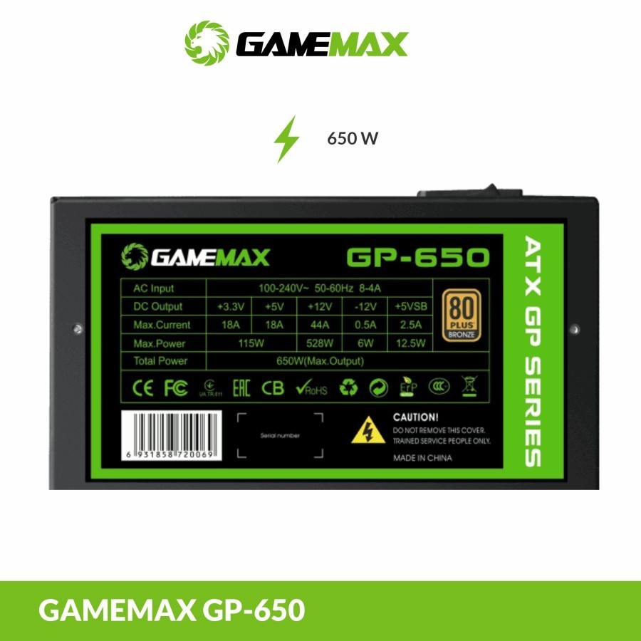 PSU GameMax GP-650 Value Gaming Power Supply | GameMax GP650 - 650Watt 80+ Bronze