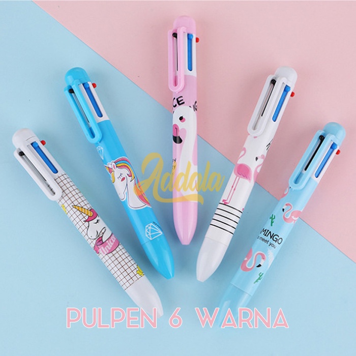 PULPEN 6 WARNA / PULPEN CETEK 6 WARNA / 6 COLORS CUTE CARTOON BALLPOINT PEN SCHOOL OFFICE