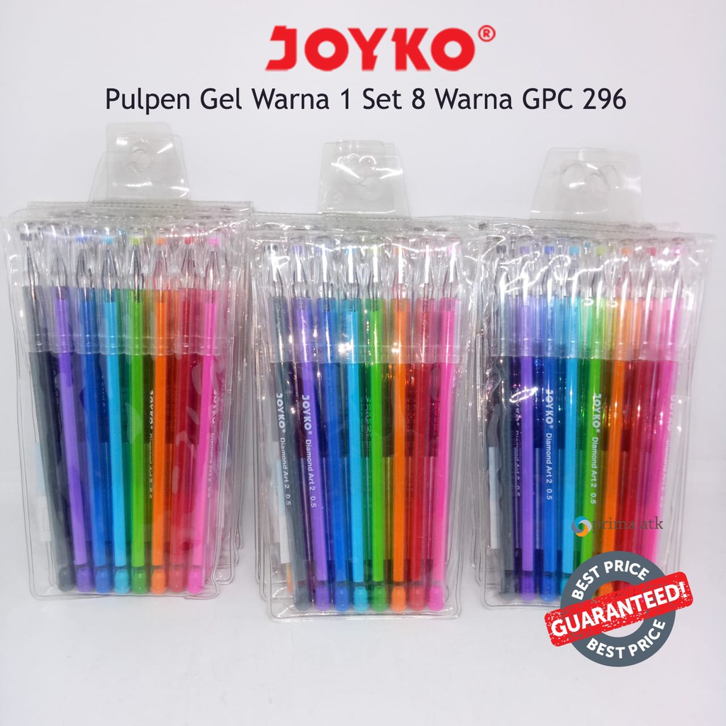 PULPEN BOLPEN GEL JOYKO COLOR GEL PEN DIAMOND GPC-296 1 SET PACK 8 PCS WARNA WARNI LUCU MURAH
