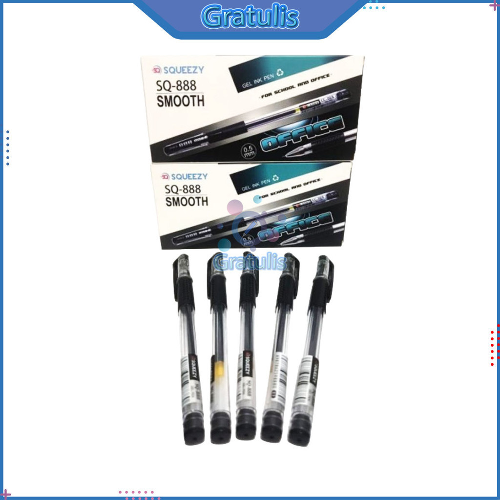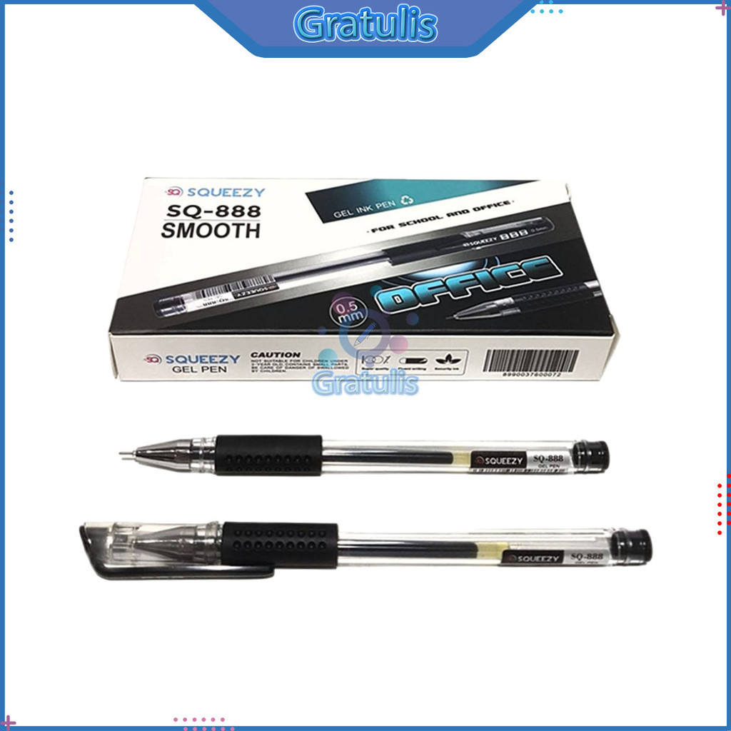 PULPEN GEL SQUEEZY SMOOTH OFFICE SQ-888 (1 PACK/12 PCS) / BALPEN JEL TINTA HITAM / POLPEN / PENA 1 PAK / BALLPOINT TULIS