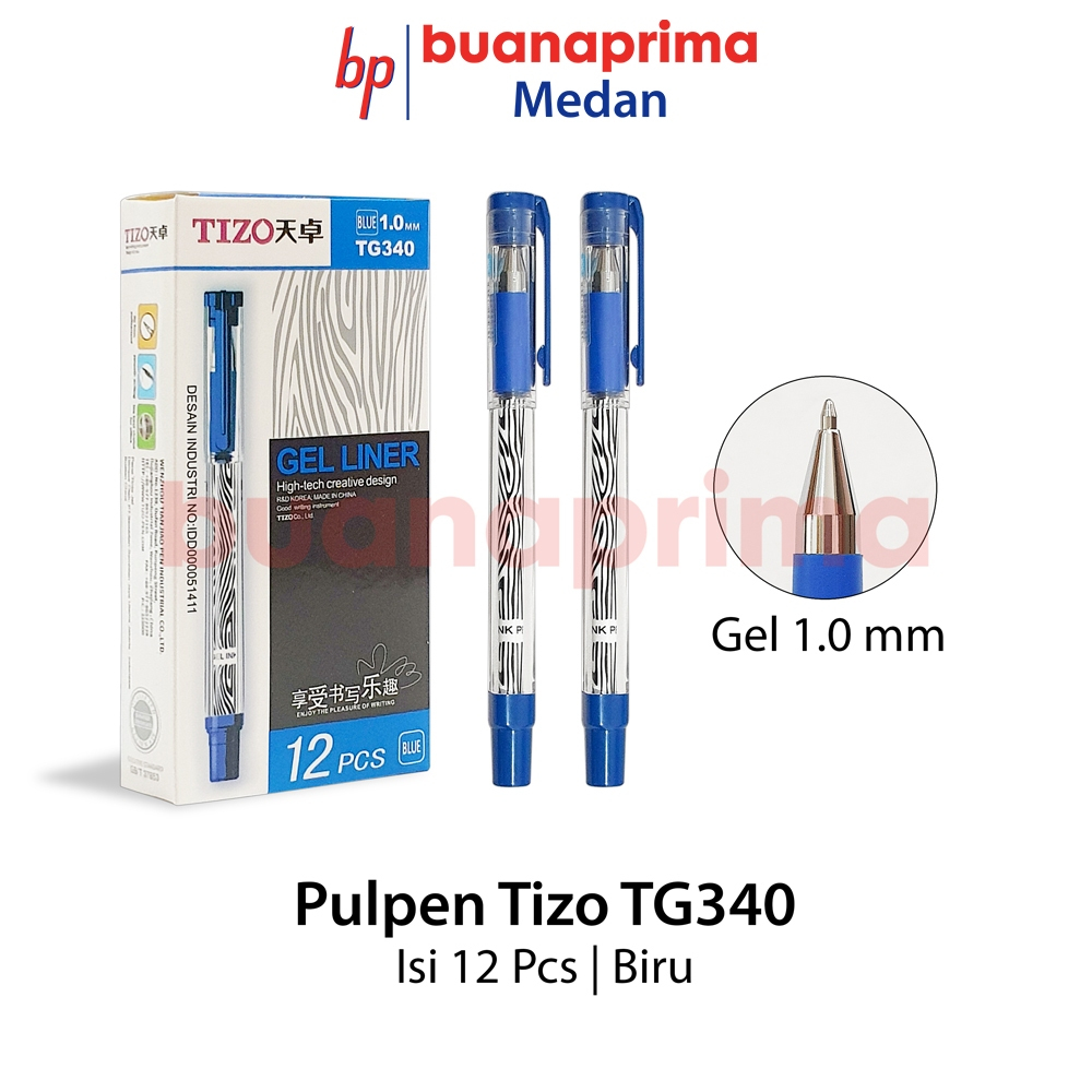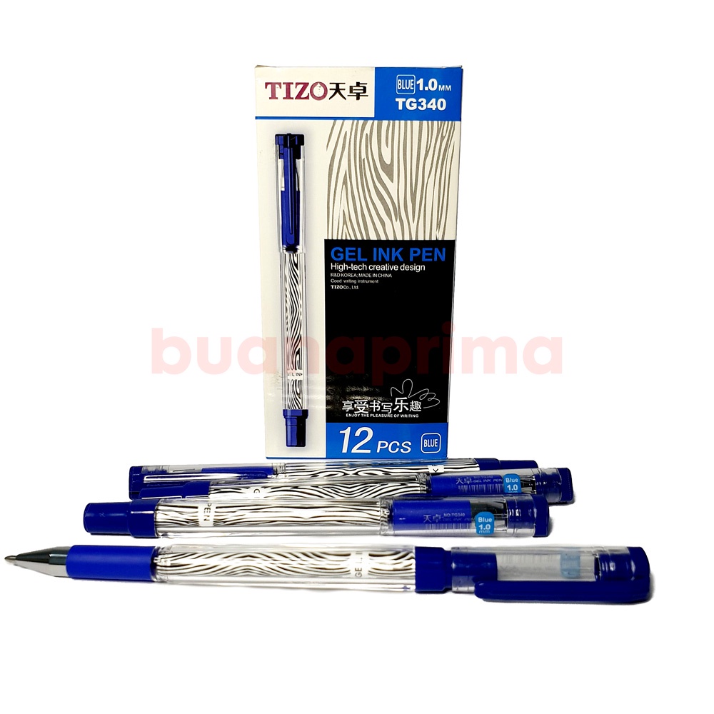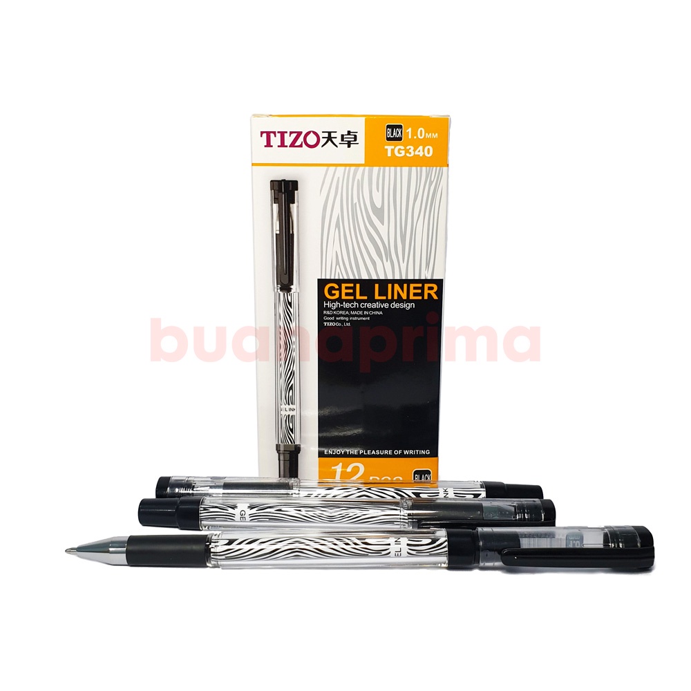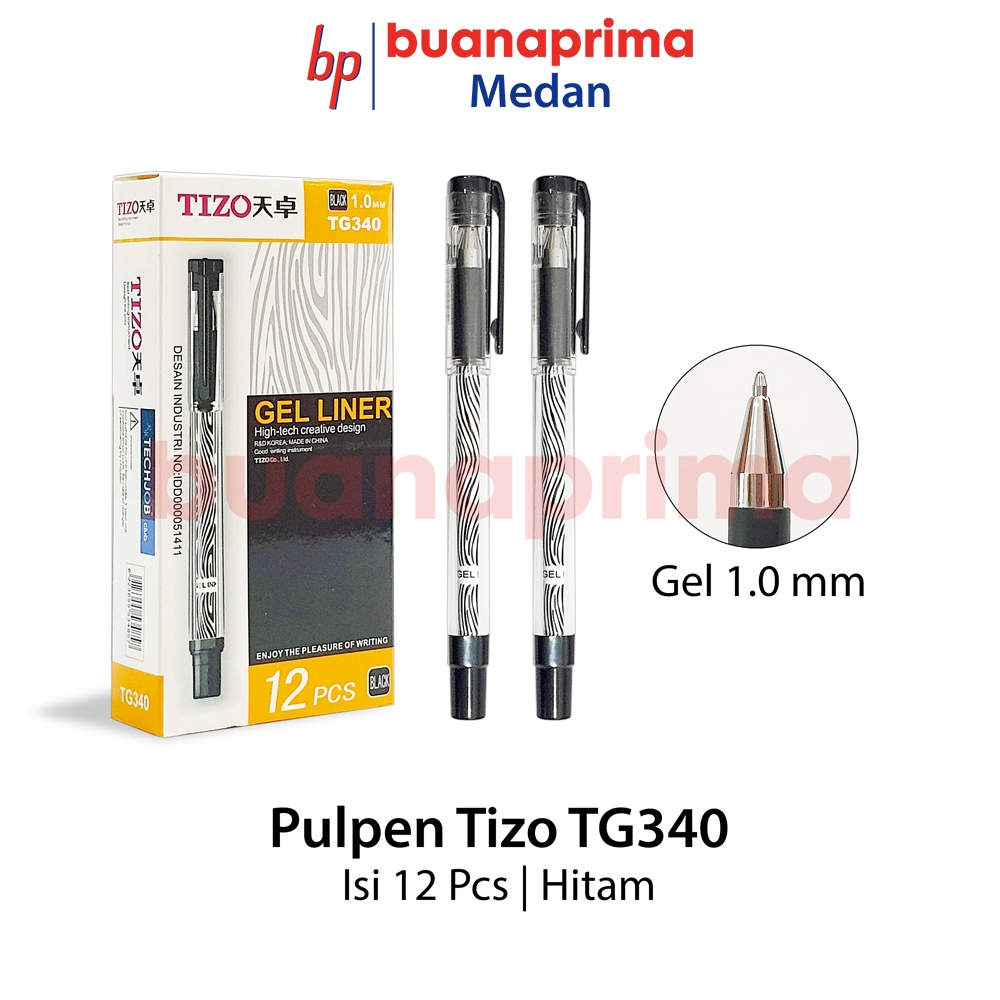 Pulpen GEL TIZO TG 340 Tip 1.0 mm 1 Box isi 12 Pcs Tanda Tangan Hitam Pen Ball Poin Bolpen