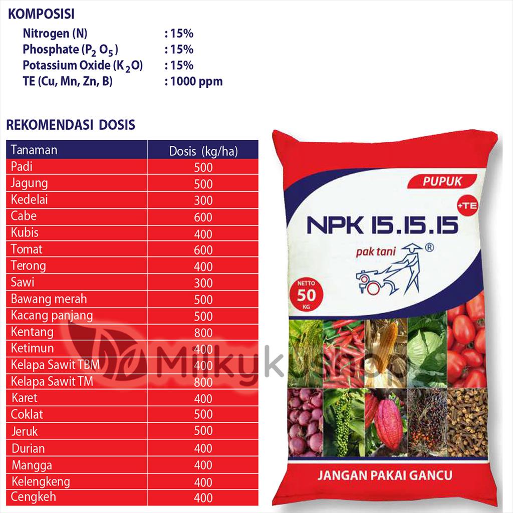 PUPUK PAK TANI NPK 15 15 15 ISI 50KG KEMASAN PABRIK VIA CARGO