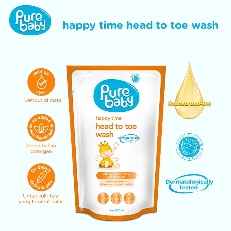 PURE BABY PUREBABY HAPPY TIME GENTLE SOOTHING HEAD TO TOE WASH 2IN1 200ML SHAMPO SABUN MANDI ANAK BAYI