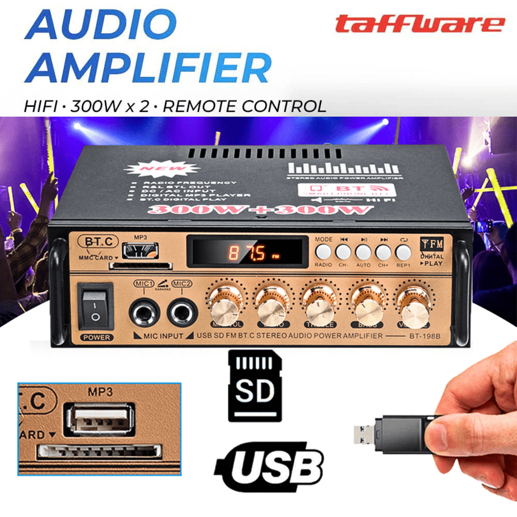 PUSAT Taffware Ampli Amplifier Bluetooth super bass 600 watt karaoke rumah rumahan BT 198E