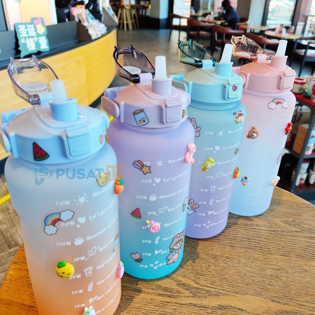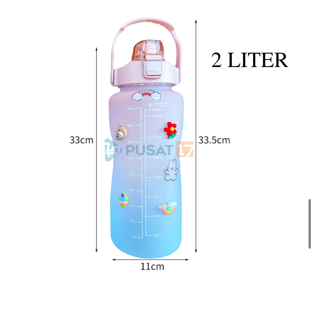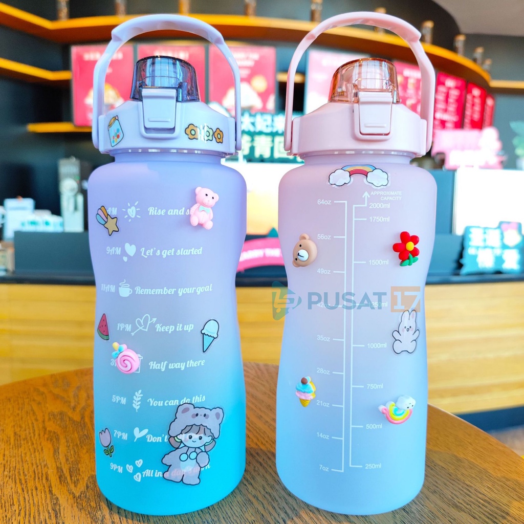 PUSAT17 BOTOL MINUM MOTIVASI 2 LITER / BOTOL VIRAL 3D 2 LITER 2000ML / BOTOL PELANGI BOTOL KOREA VIRAL TUMBLER 2LITER TUMBLR