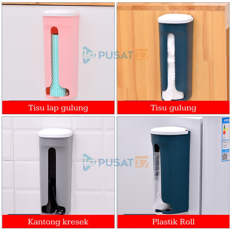 PUSAT17 DISPENSER TEMPAT KANTONG PLASTIK SAMPAH TEMPEL DINDING HOOK / TEMPAT PENYIMPANAN KANTONG PLASTIK DAPUR KRESEK TISU ROLL