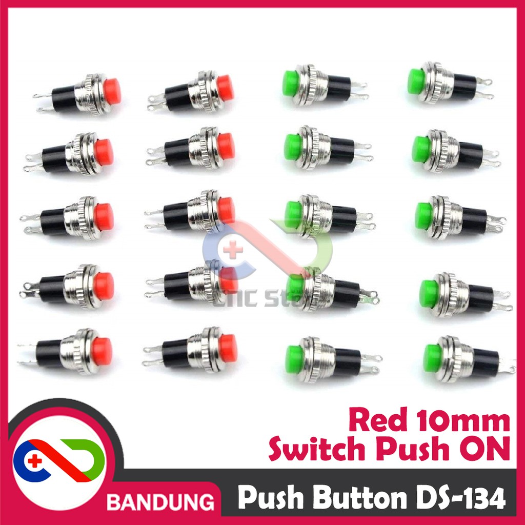 Push Button DS-134 10mm – Tombol Reset Warna Merah & Hijau untuk Proyek Elektronika dan Arduino