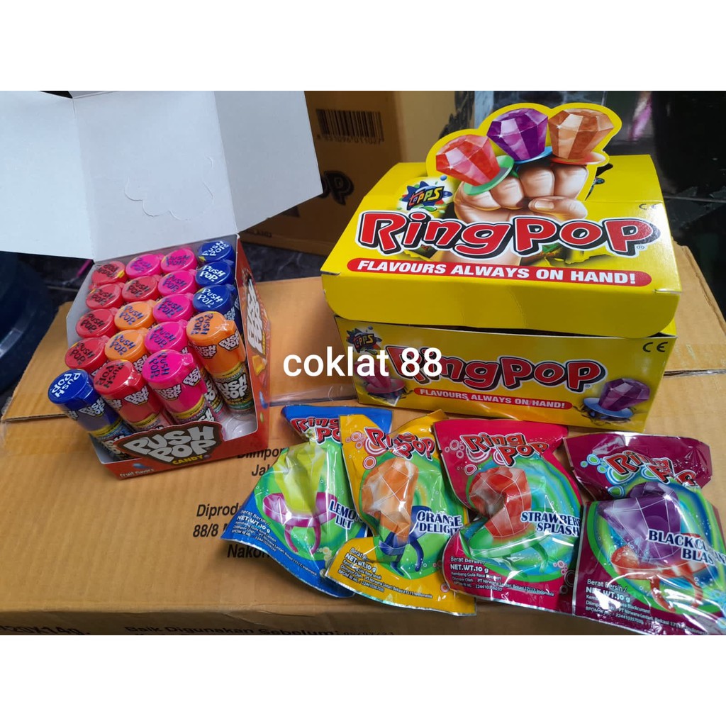 Ring Pop Candy 10gr Permen Cincin dan Push Pop Candy 14gr Permen Anak Rasa Buah HALAL MUI