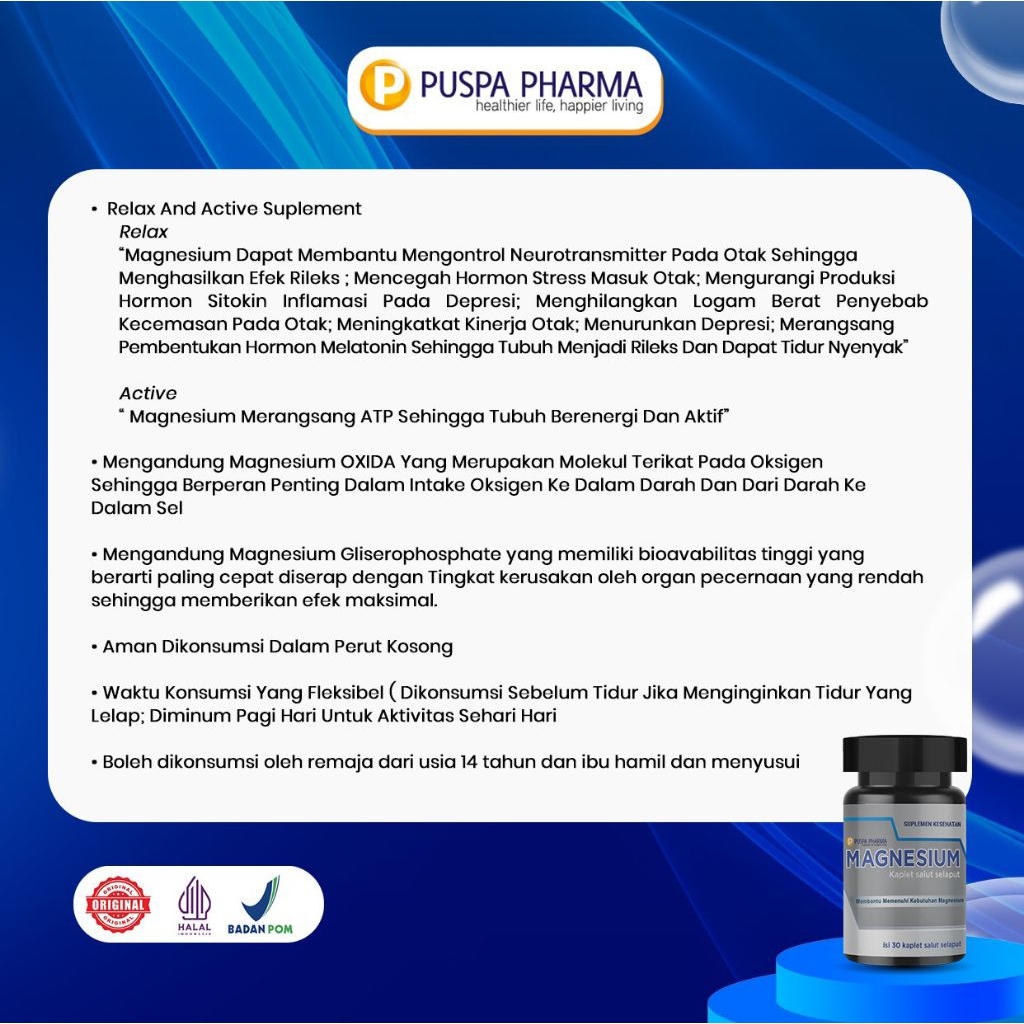 PUSPA MAGNESIUM 350 mg - Mineral Kesehatan tulang #melatonin #Susahtidur #PMS #Stres