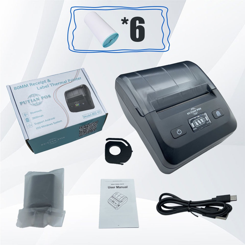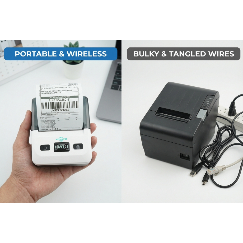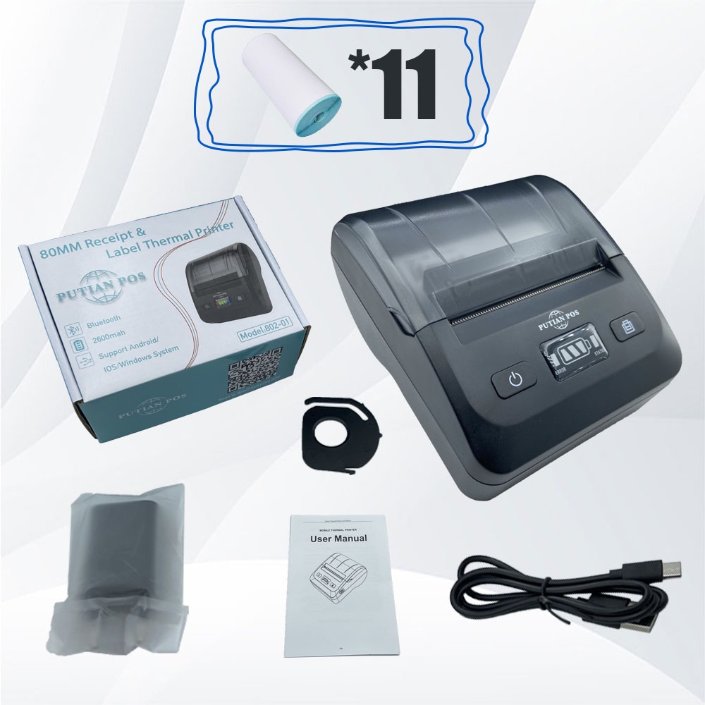 Printer Thermal 80MM Bluetooth + USB Cetak Resi Alamat Kasir Nota PPOB POS Barcode Support Kertas /android/ios/Windows /free* 1 Roll
