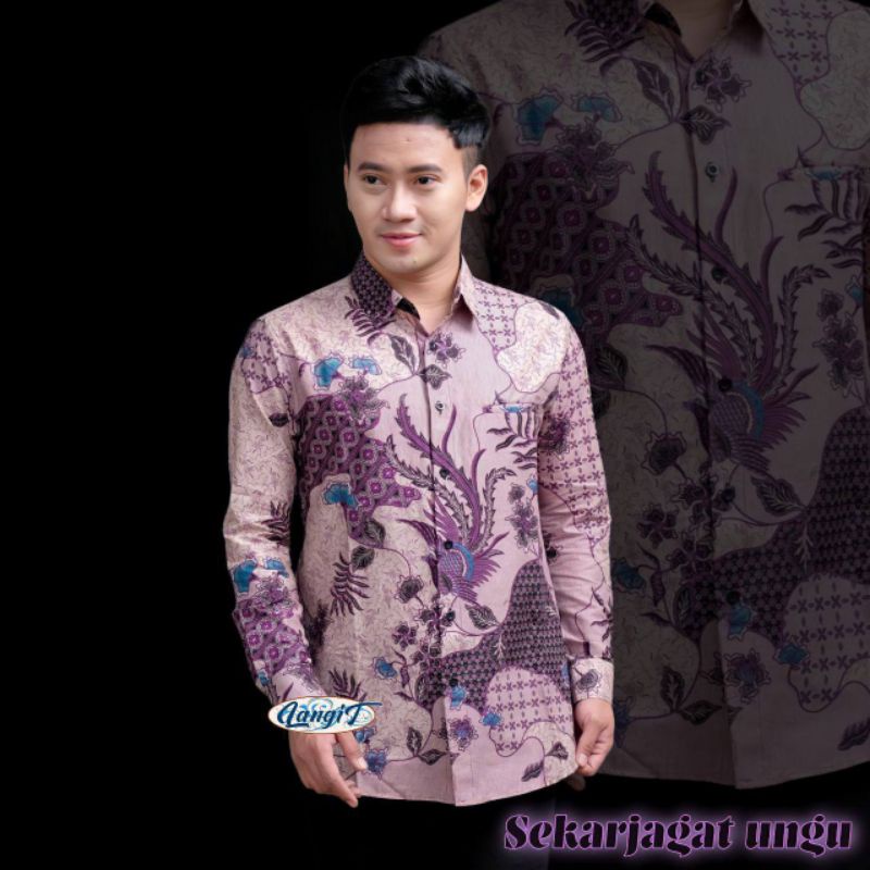 PUTU ECER KEMEJA HEM ATASAN BAJU BATIK PRIA COWOK MOTIF KERISS WARNA HITAM UNGU LILAC LENGAN PANJANG seragam batik cowok kerja kantor kondangan hajatan pesta M L XL XXL murah ungu muda tua lilac lavender