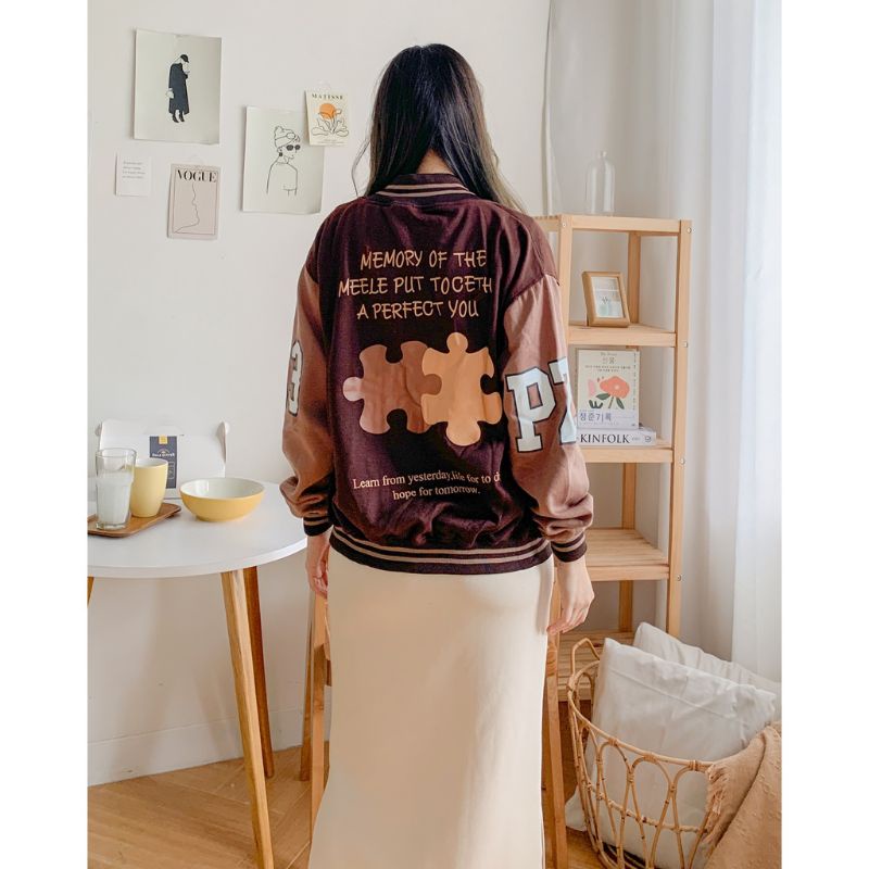 PUZZLE A CHOCK BROWNIE VARSITY BASEBALL OVERSIZE / BOMBER JAKET BISBOL KOREA STYLE /JAKET WANITA VARSITY