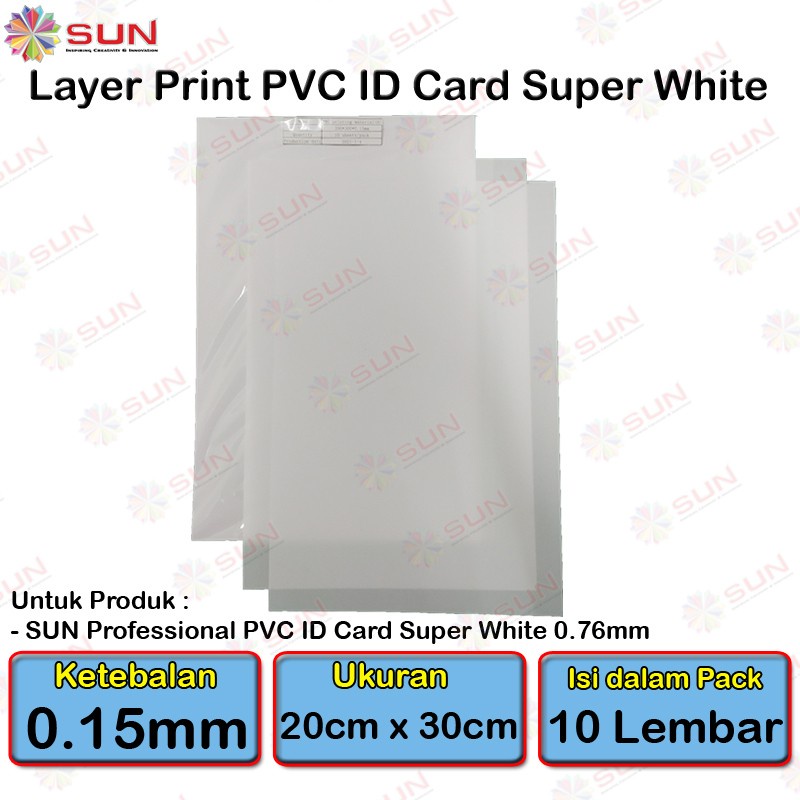 PVC ID Card A4 PREMIUM - SUN Kertas PVC ID Card Super White 0.76/0.96, Silver/Platinum 0.76 (Isi 5 Lembar = 50 Card) ( Support epson/canon/hp/brother ori/dye/pigment/art paper ink - 664, 003, 673, 790, 810, BT5000, GT51 52, dll)