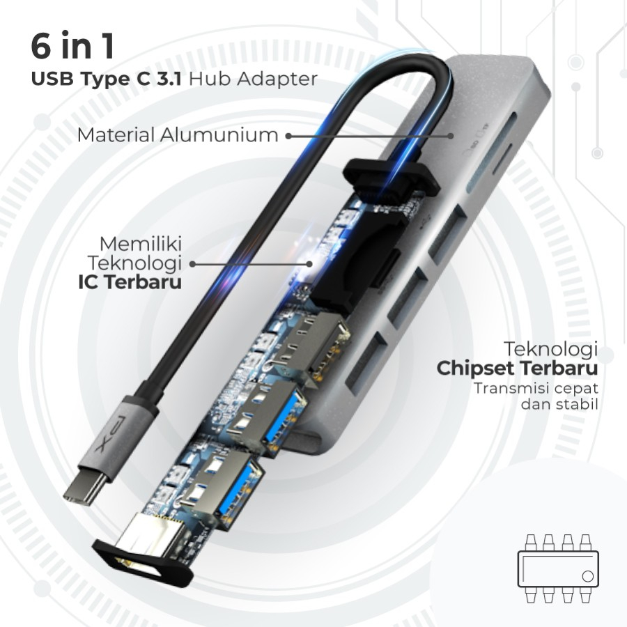 PX Type C 3.1 to HDMI Hub Converter USB Micro SD Card 6 in 1 - PX UCH160