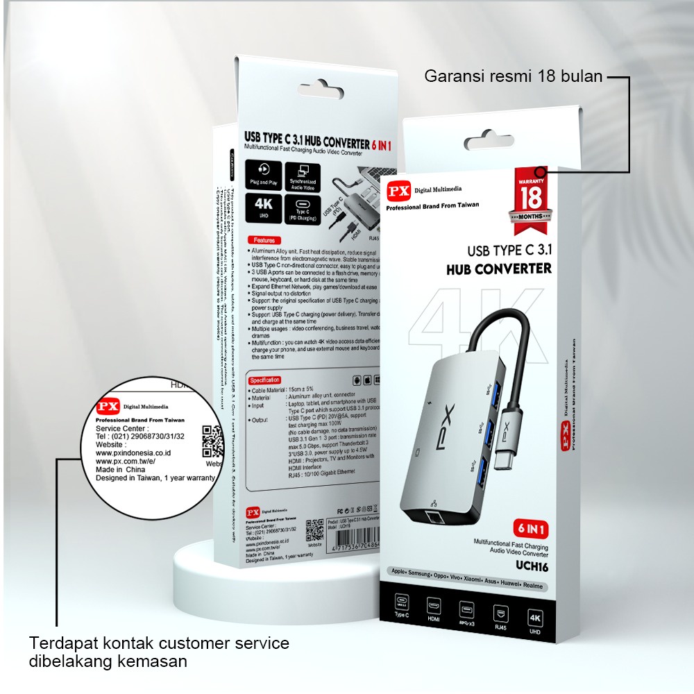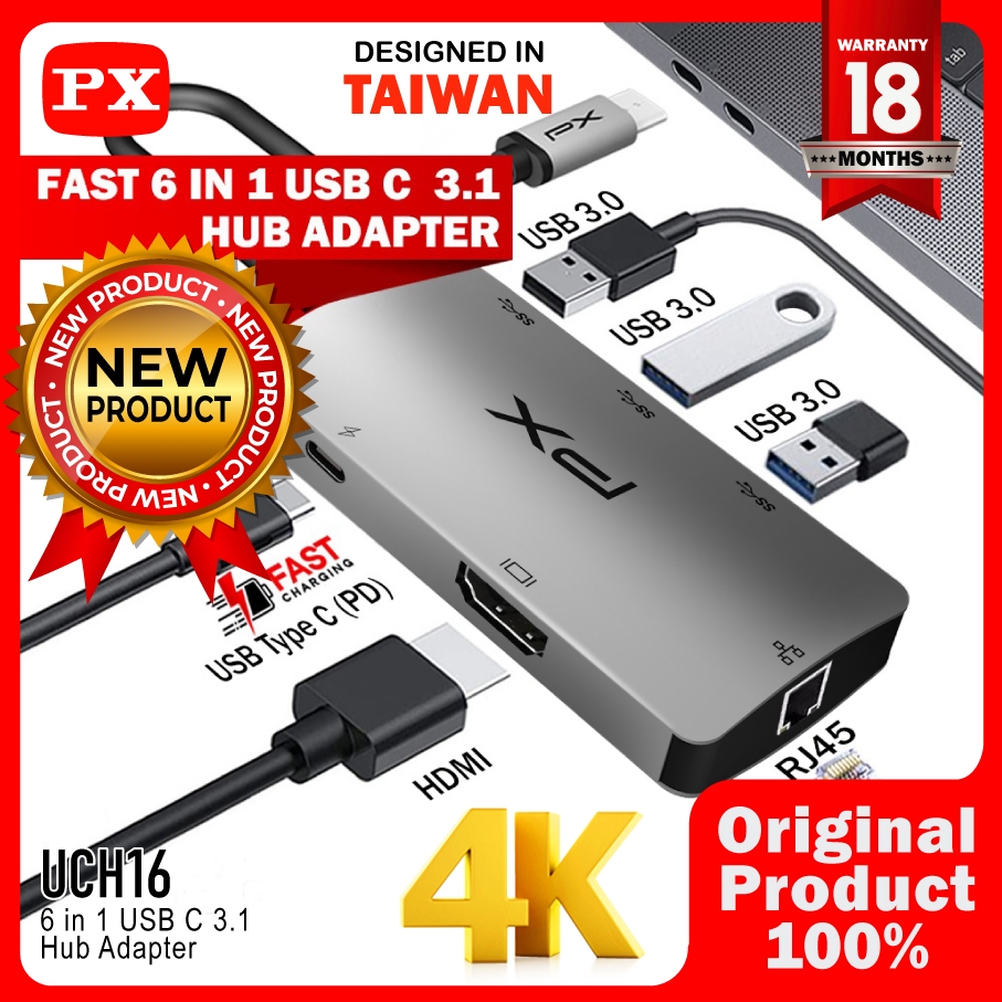 PX UCH-16 USB Hub Type C Converter Laptop PX Macbook To HDMI USB 3.0 Thunderbolt LAN RJ45 6in1 UCH 16 UCH16