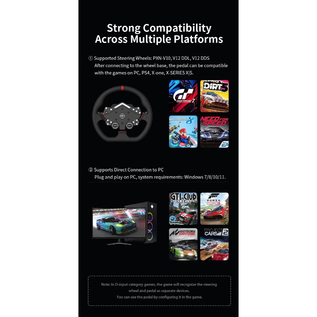 PXN PD HM GEN 2 Gaming Racing Pedal Set with Hall Effect & Adjustable Pedal Steering Wheels