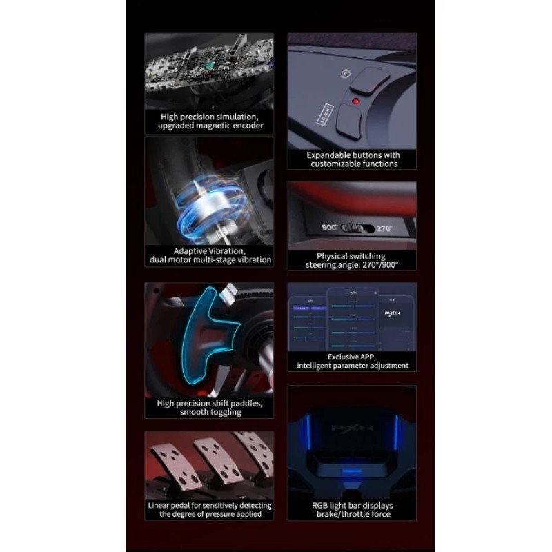 PXN V9 GEN2 Racing Steering Wheel 16 bit Magnetic Encoder Racing With RGB
