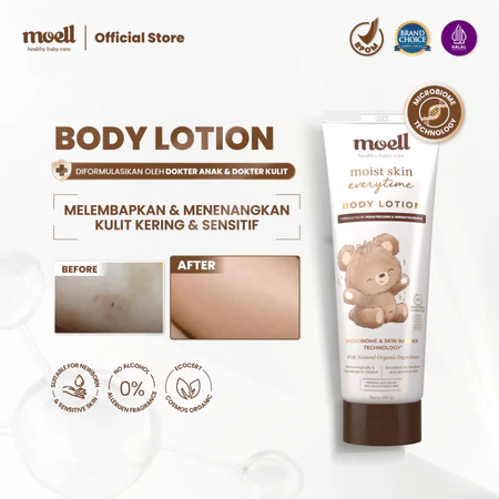 Moell Body Lotion Bayi 80gr & 185gr - Body Lotion Untuk Kulit Sensitif & Kering - Pelembap Bayi Anak Daily Use - Sensitif, Kering, Ruam (Eksim) -Skincare Bayi & Anak
