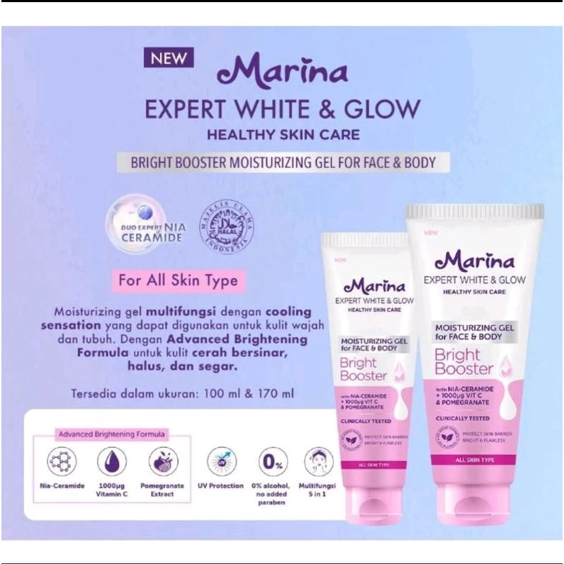 MARINA MOISTURIZING GEL FOR FACE AND BODY - BRIGHT BOOSTER PELEMBAB WAJAH DAN TUBUH