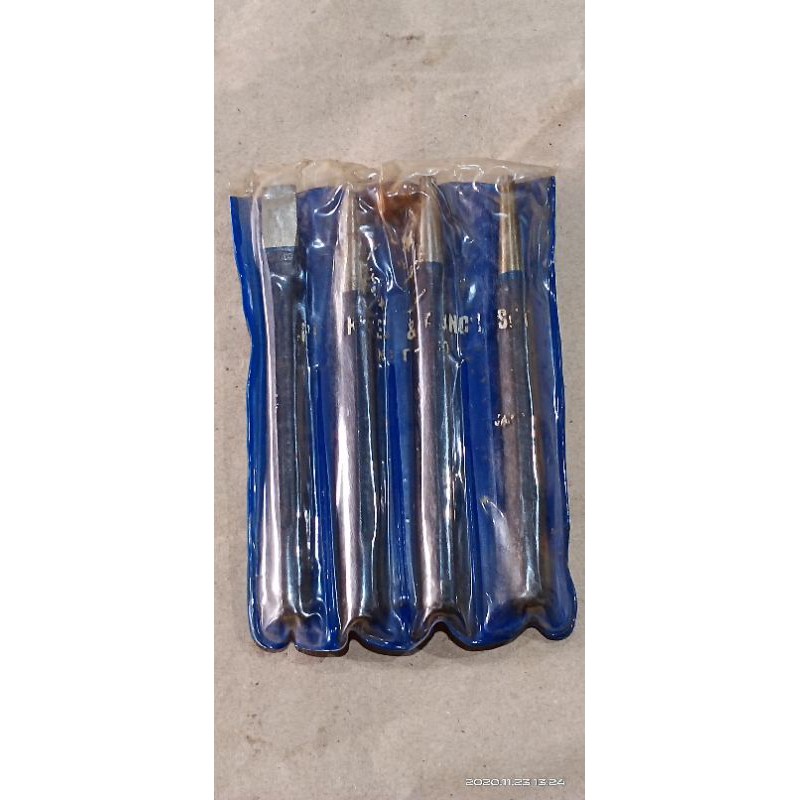 Pahat, Pelubang & Pemukul Besi Set isi 4. Panjang 5"/12,5 cm. Merk Orion. Made in Japan.