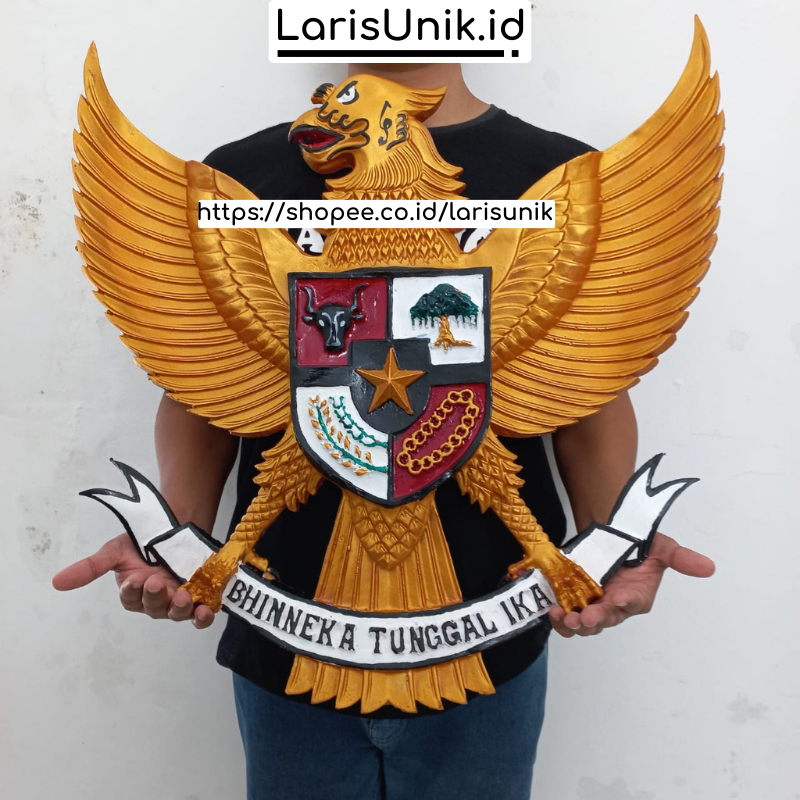 Pajangan Dinding Garuda Pancasila 3D 3 Dimensi Lambang Replika Burung Garuda Indonesia Fiber Gold Besar Ukir 57CM