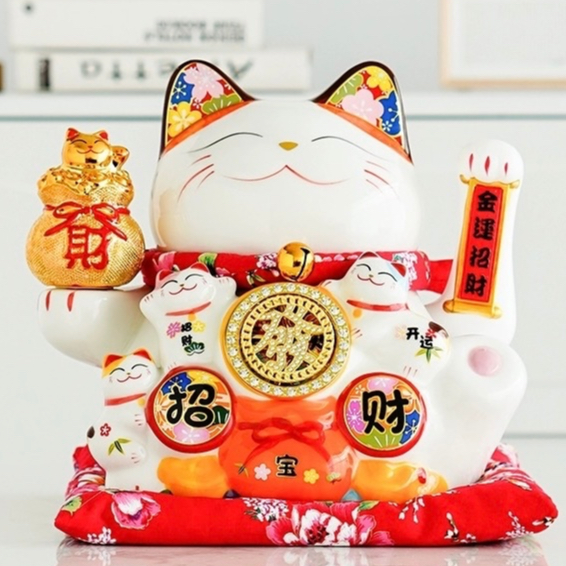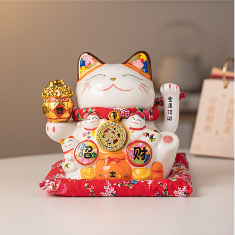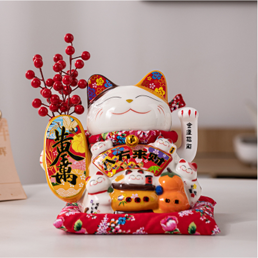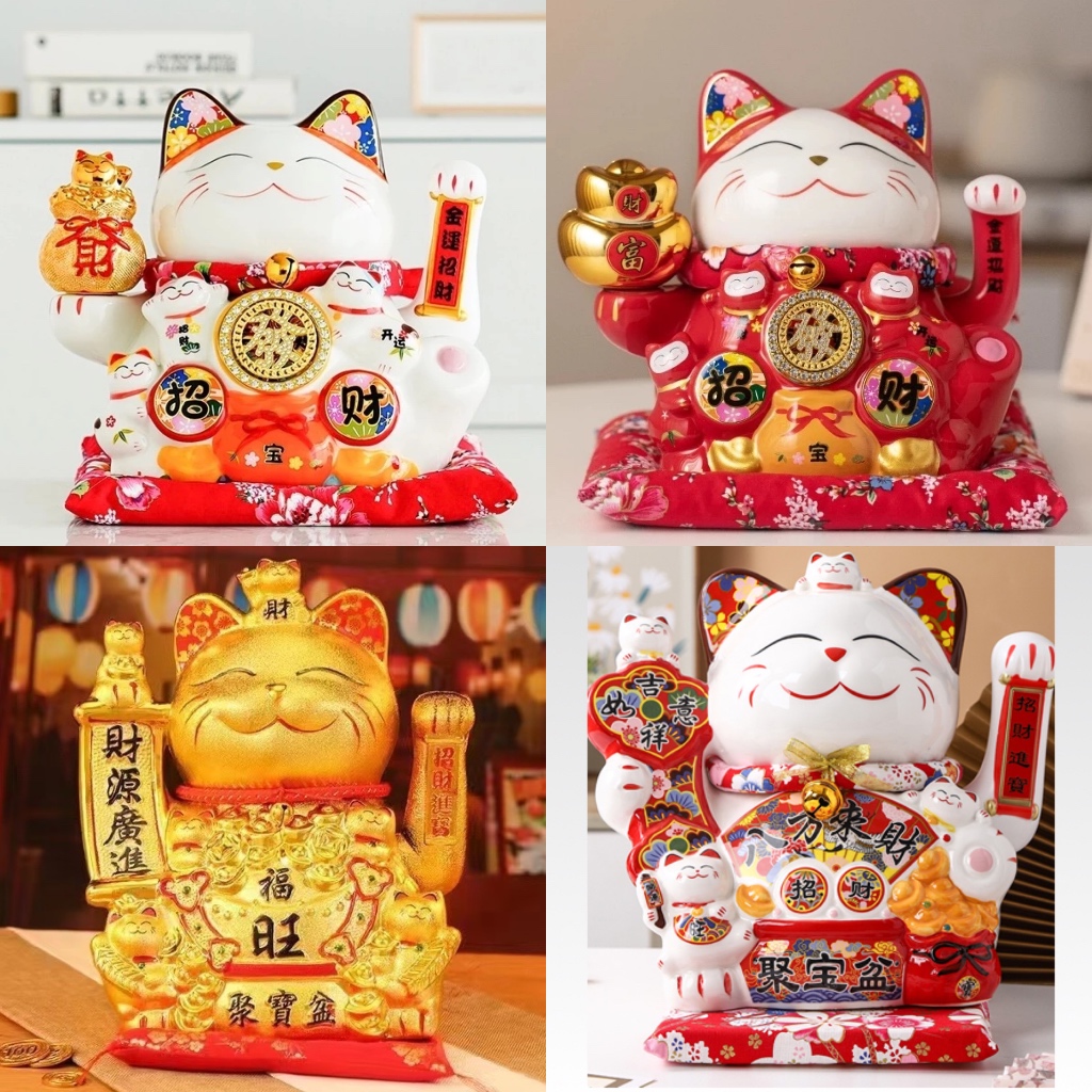 [VAES] Pajangan Imlek Lucky Cat Berlian Patung Kucing Keberuntungan Maneki Neko Putih Emas Merah Dekorasi Rumah Hiasan Hoki Kemakmuran Chinese New Year Mewah Modern Klasik