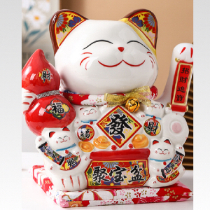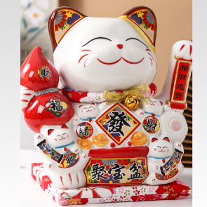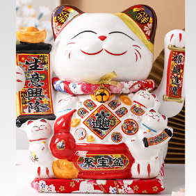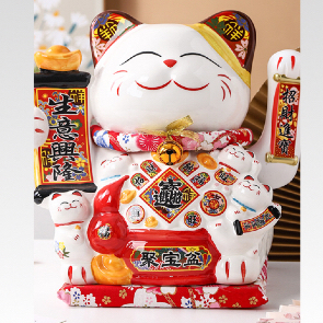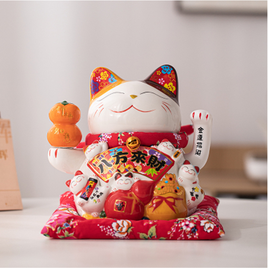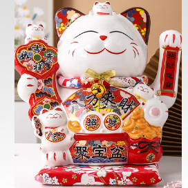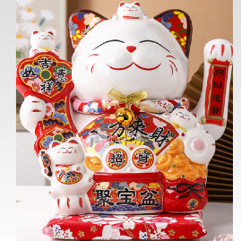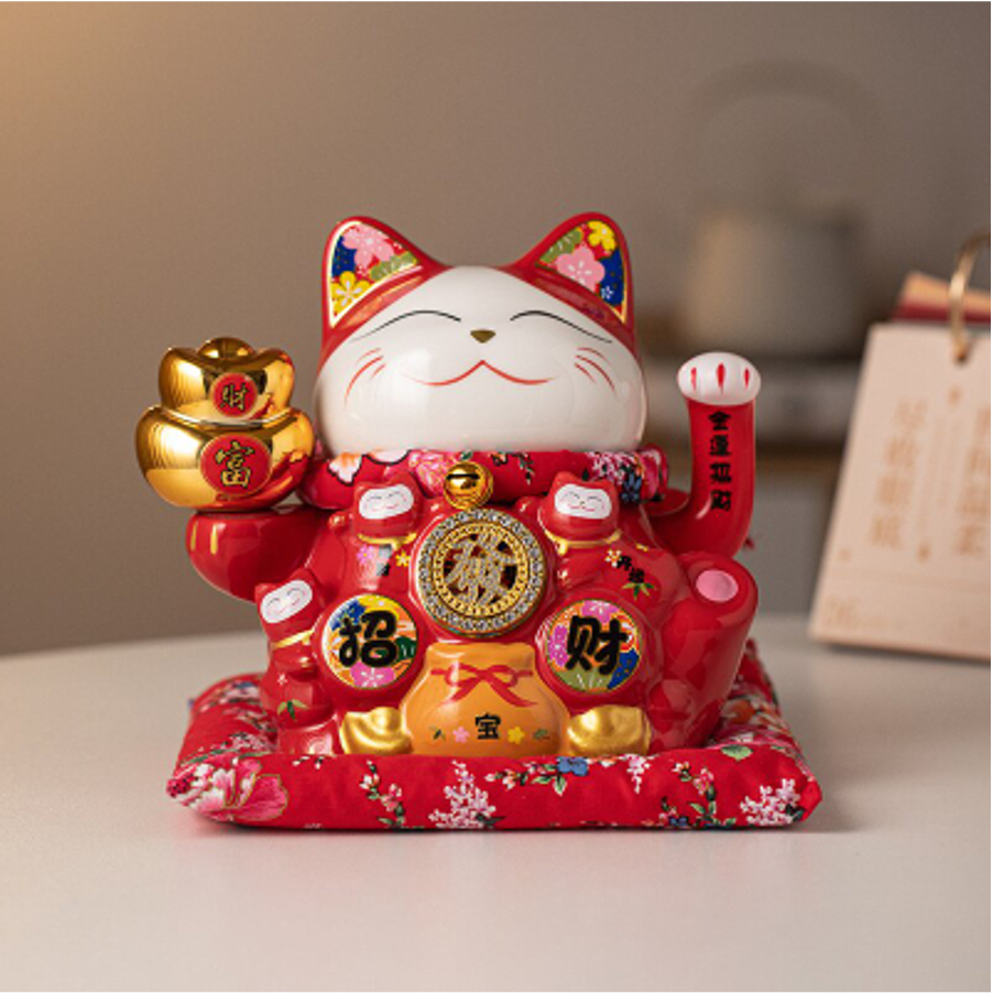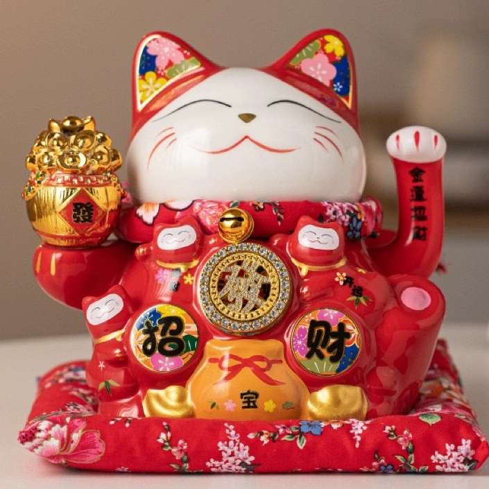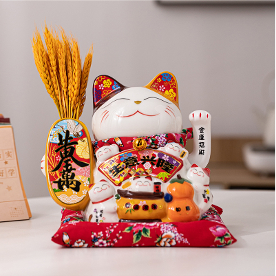 [VAES] Pajangan Imlek Lucky Cat Berlian Patung Kucing Keberuntungan Maneki Neko Putih Emas Merah Dekorasi Rumah Hiasan Hoki Kemakmuran Chinese New Year Mewah Modern Klasik