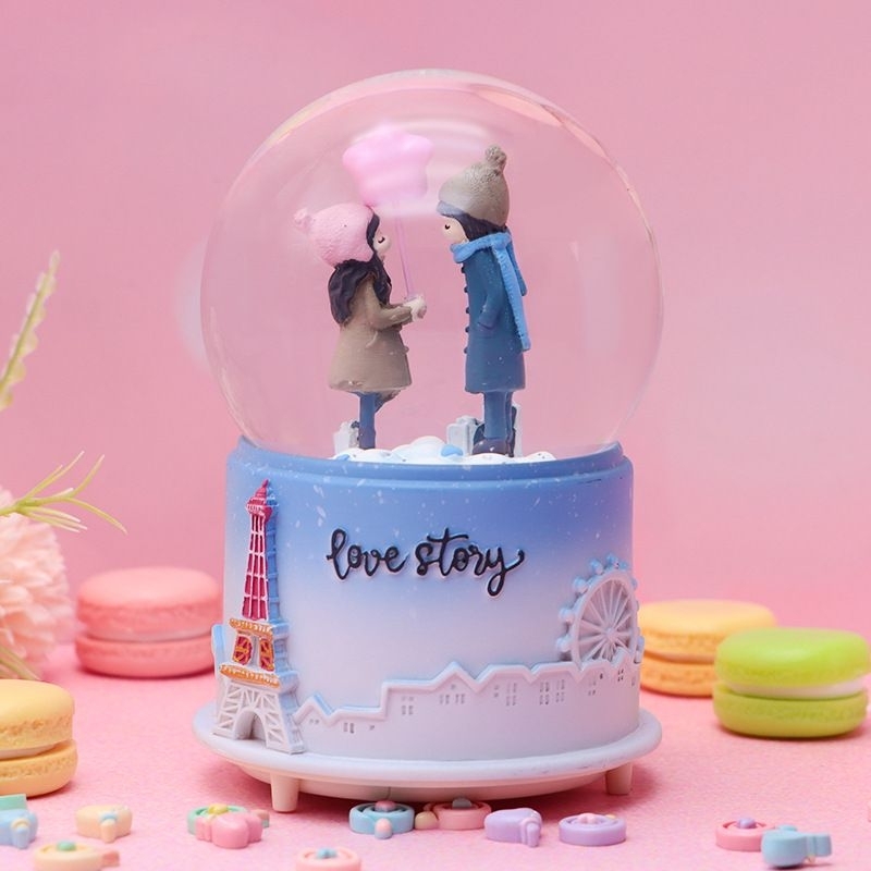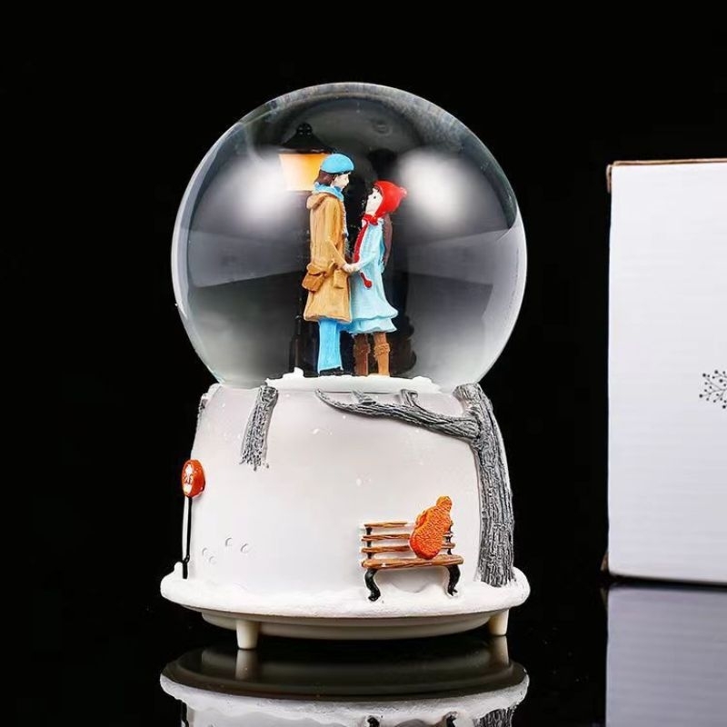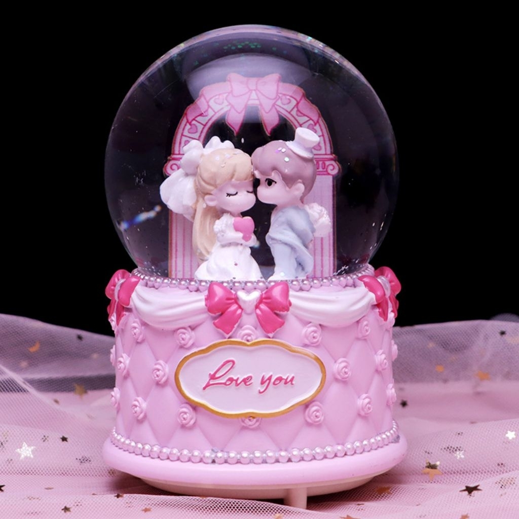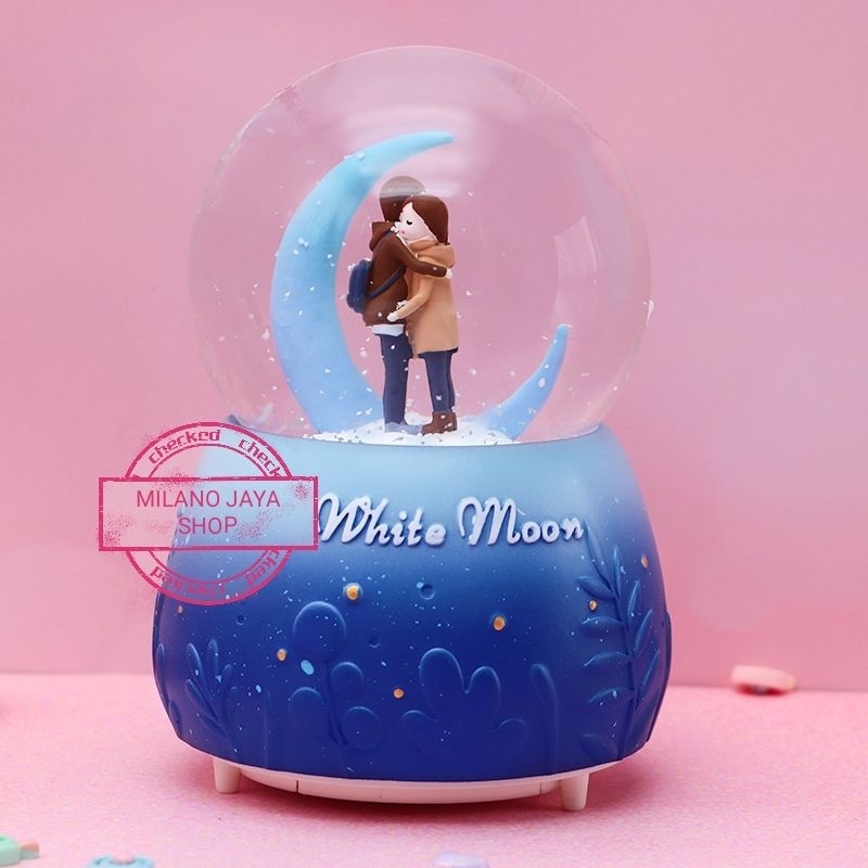Pajangan Snowball Couple Winter Moon Kotak Musik Bola Salju Kristal Kado Ultah Valentine Anniversary