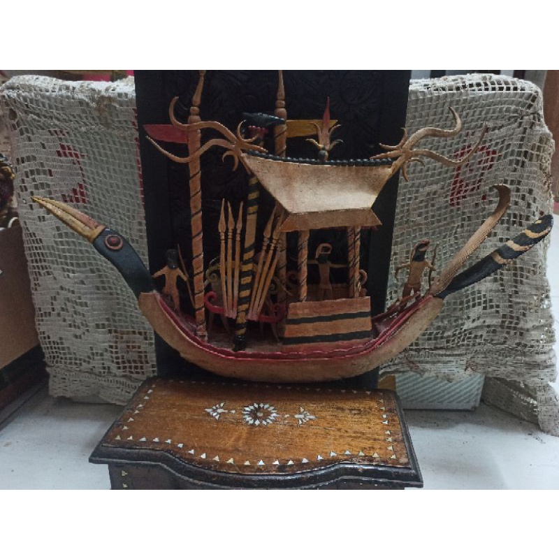 Pajangan Vintage perahu Getah Nyatu suku Dayak Kalimantan 49 cm Minus