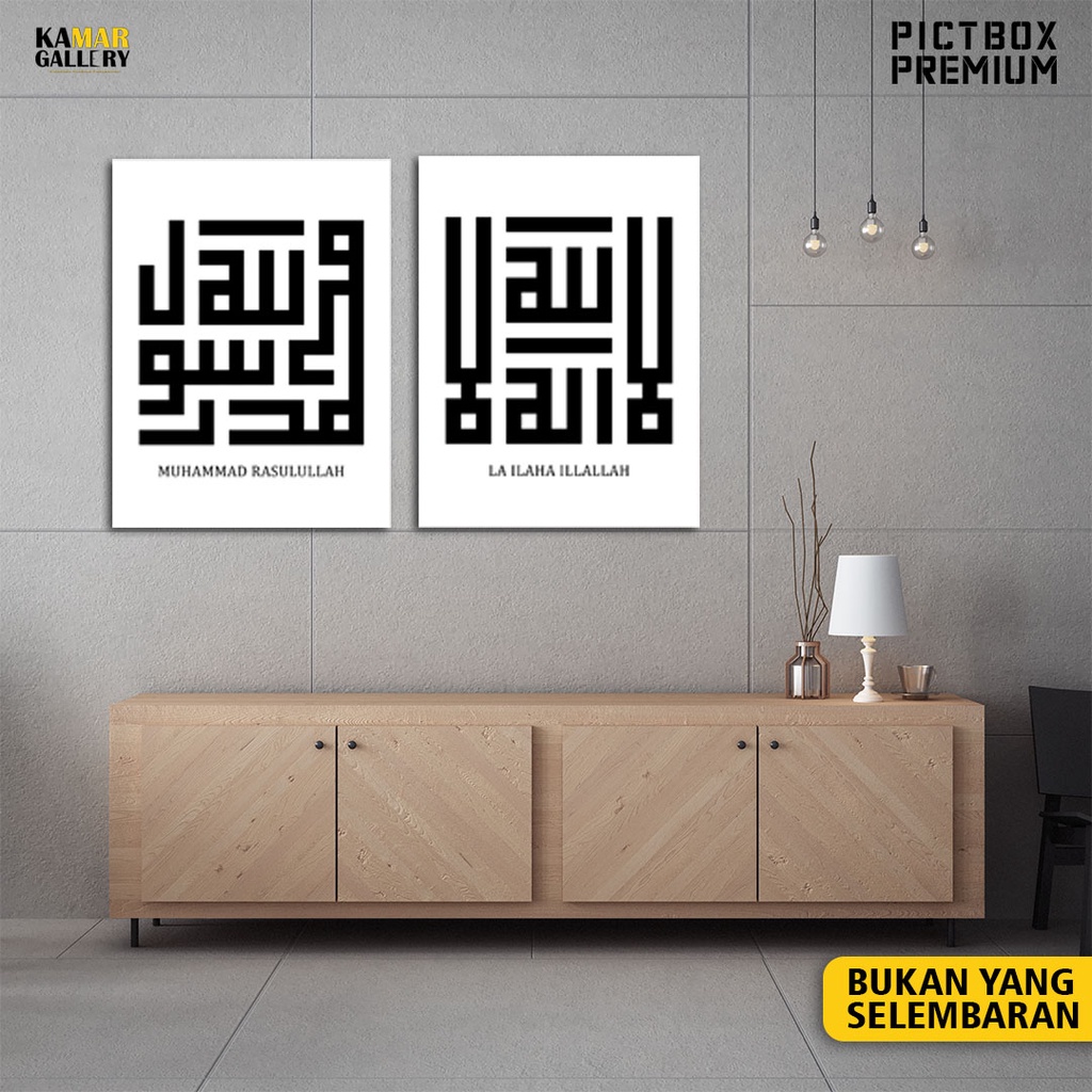 Pajangan dinding kaligrafi kufi allah muhammad Hiasan dinding ruang tamu islami Kaligrafi minimalis