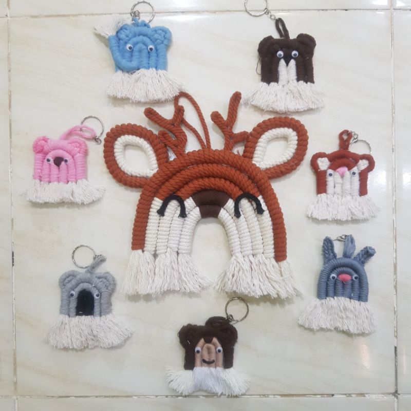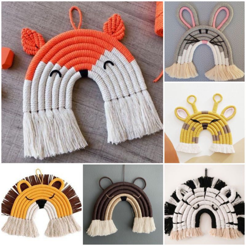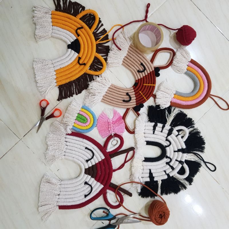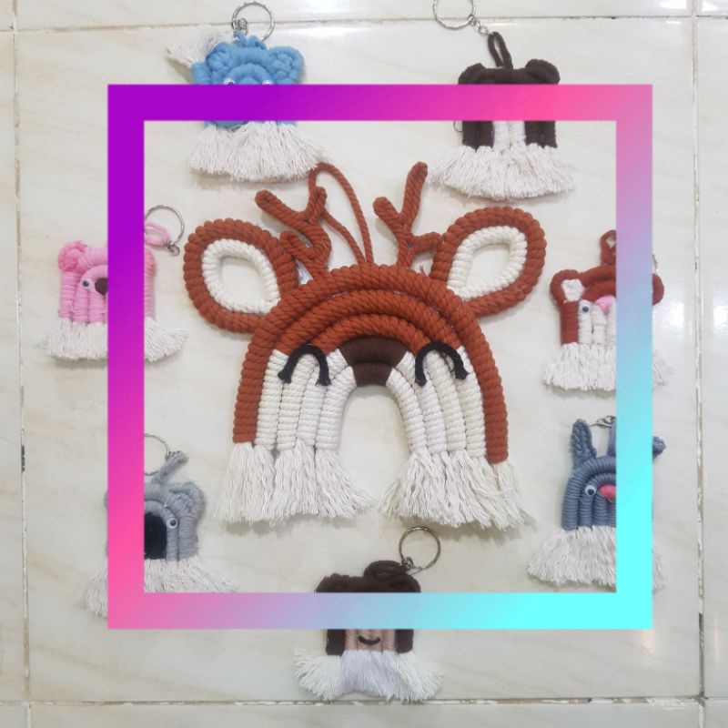 Pajangan hiasan dinding lucu Wall hanging macrame makrame rainbow pelangi animal binatang