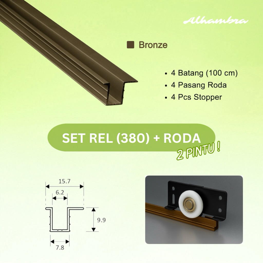 [2 Pintu] Set Roda + Rel Tanam 75 Panjang 100 , 150 , 200 cm - Rel Lemari Sliding Pakaian
