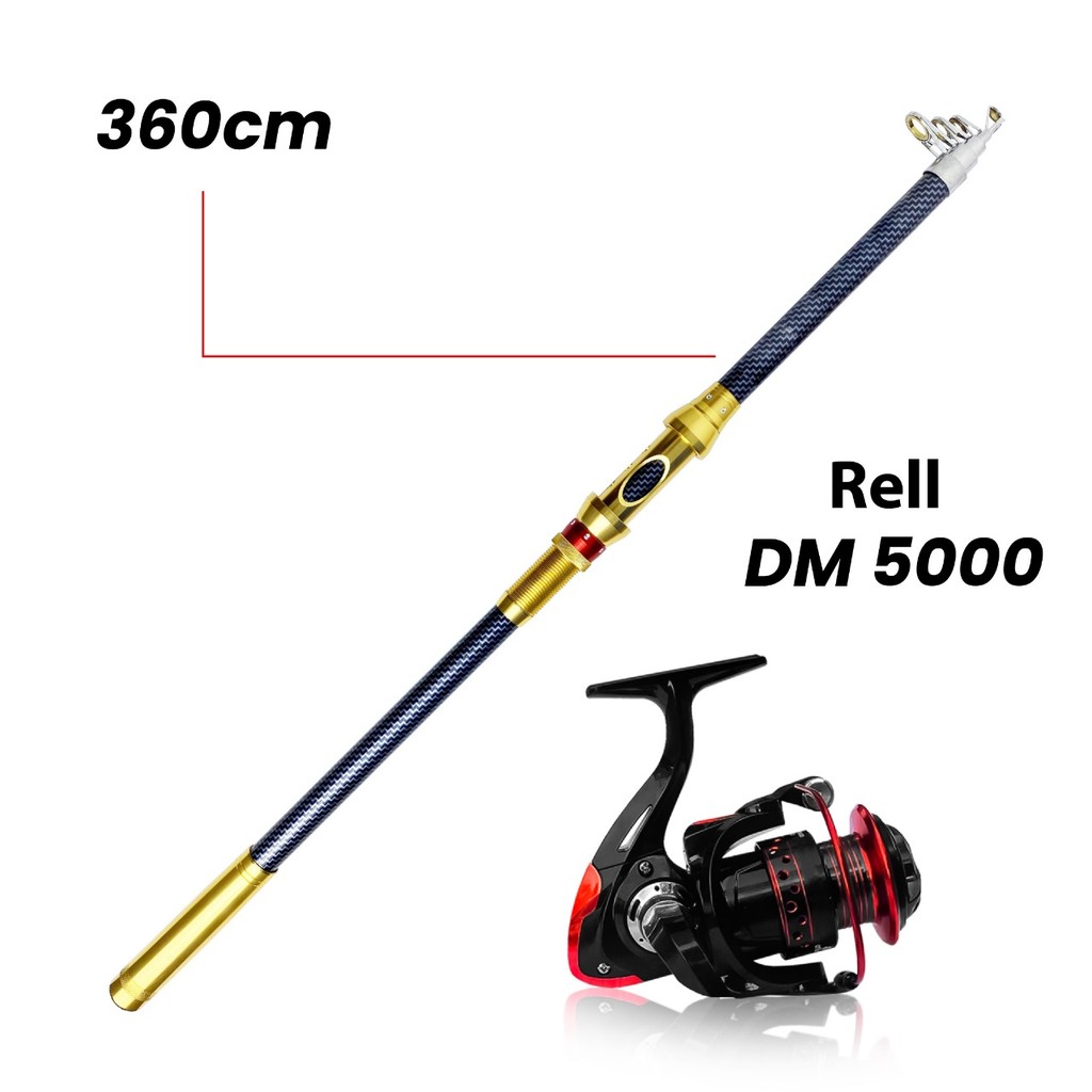 Paket 1 Set Joran Pancing Laut Antena Portable High Carbon Joran Laut Teleskopik dengan Reel Pancing