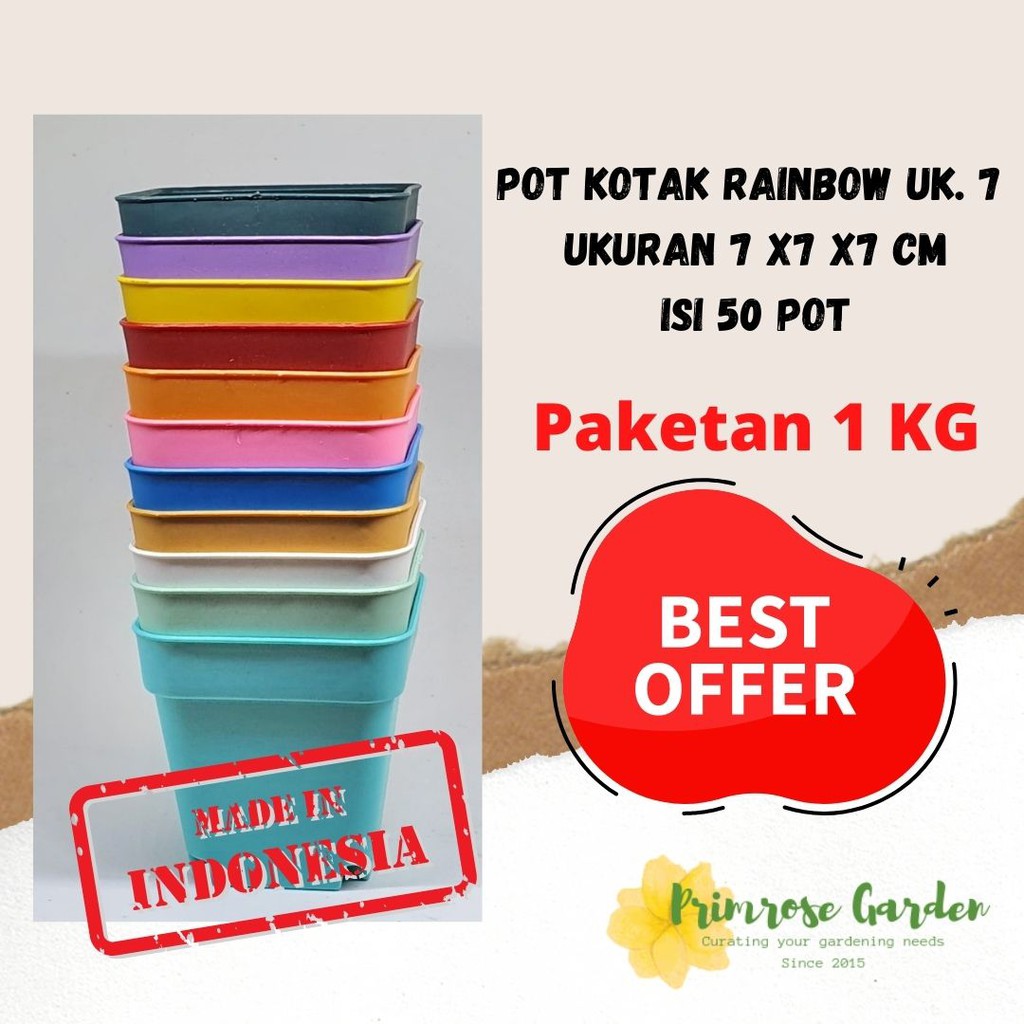 Paket 1 kilo ISI 50 pot KOTAK rainbow ukuran 7 cm