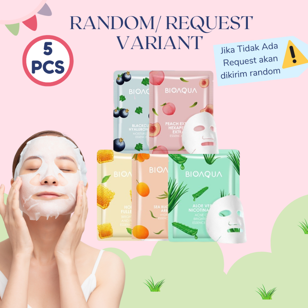 Paket 12 pcs Masker Wajah Bioaqua Facial Mask Essence Sheet Mask BPOM