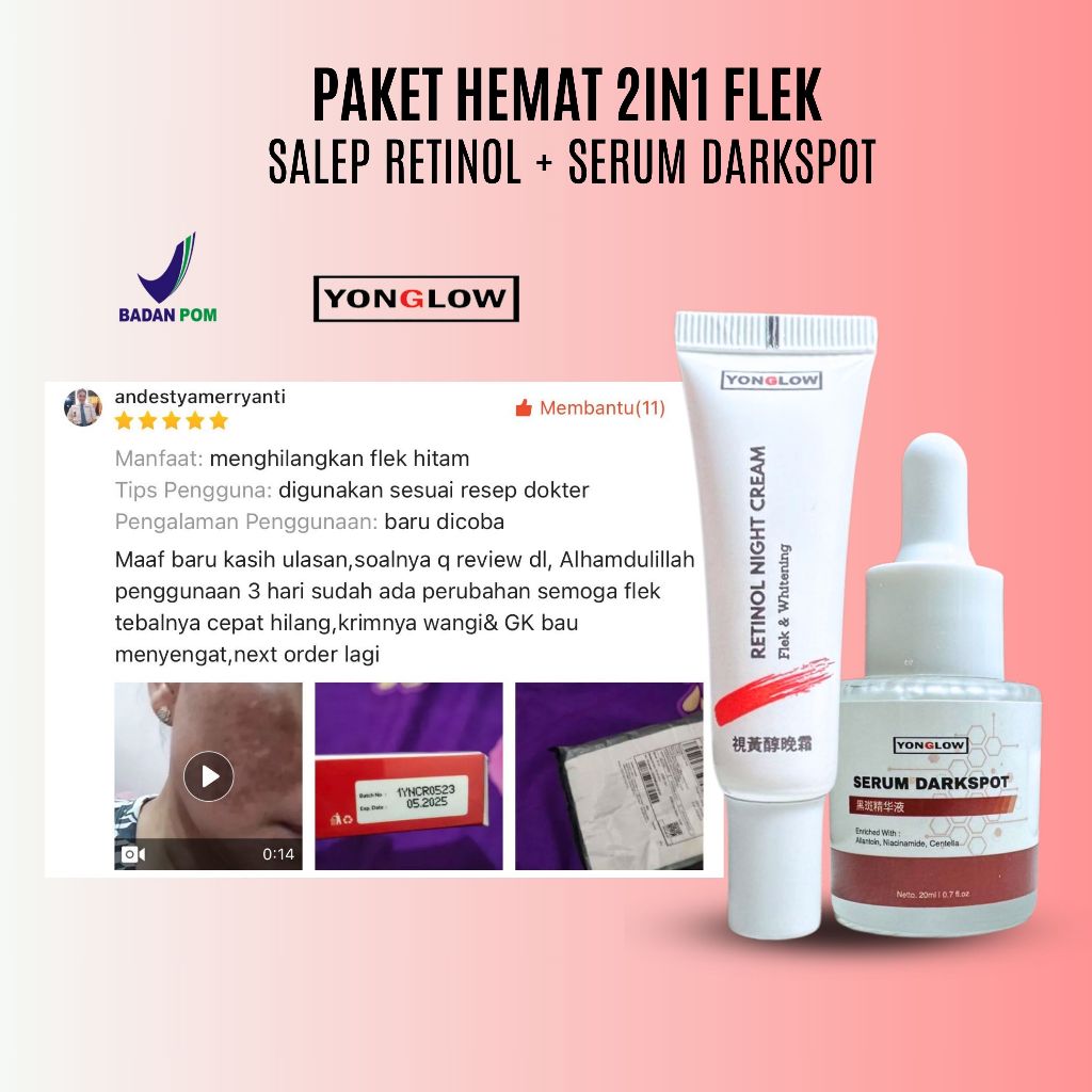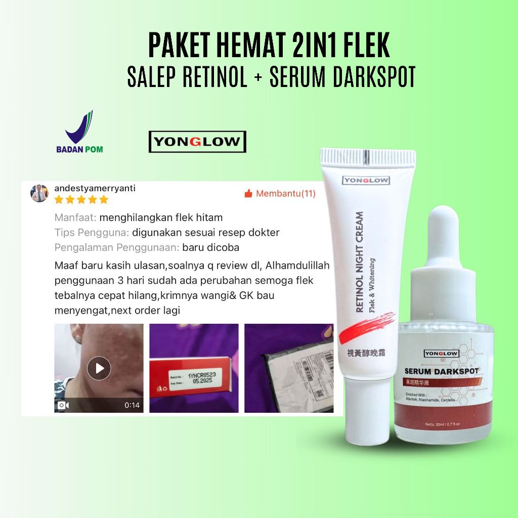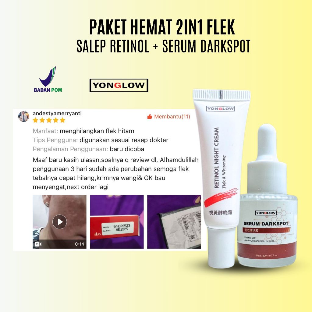 Paket 2in1 BPOM Yonglow Skincare Salep Cina BPOM Flek Hitam Melasm Bintik Bekas Jerawat Serum Darkspot Removal Penghilang Melasma Salep Pemutih Kulit Wajah Ampuh Cepat Permanen Salep Retinol Night Cream Penghilang Milia