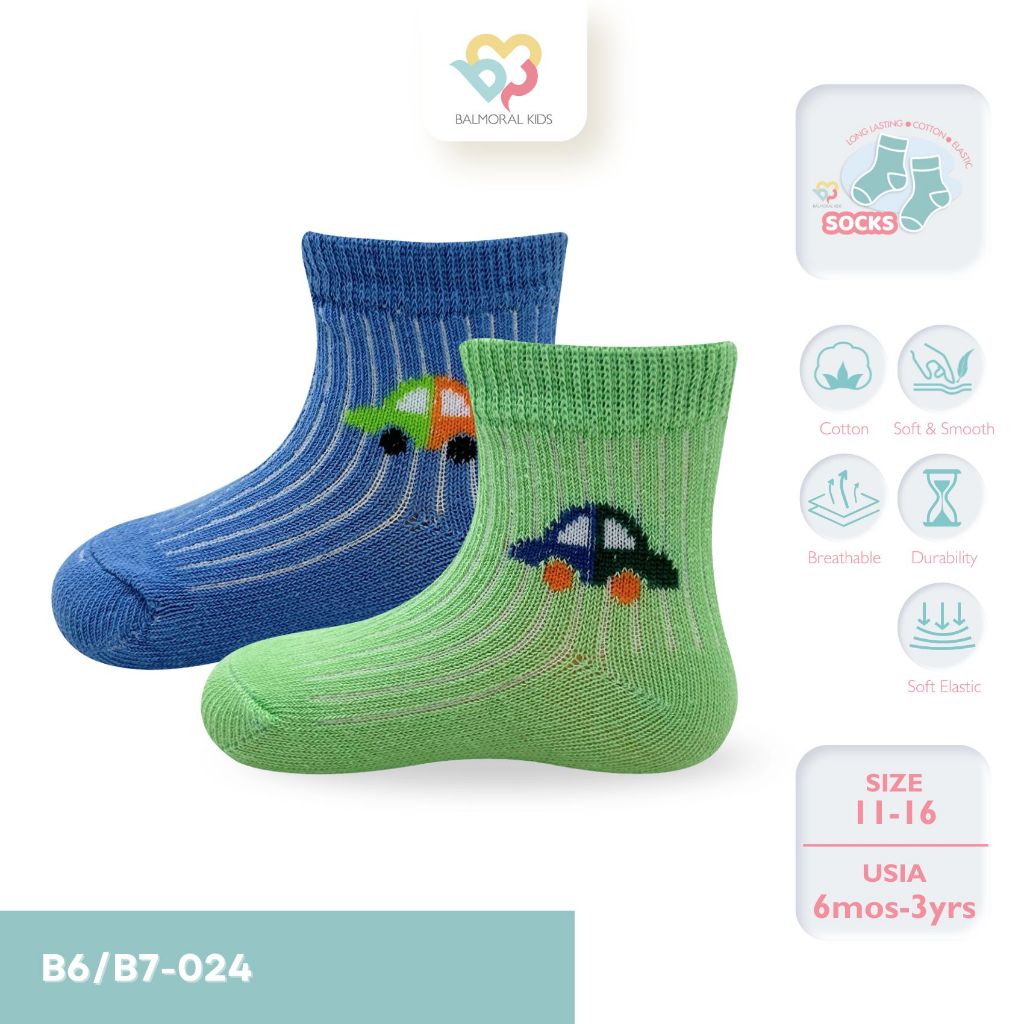 Balmoral Kids 1 Pasang Kaos Kaki Newborn - Kids Mid-Calf Socks Ukuran Panjang Sebetis Motif Vehicle Series Cotton Blend Boys Usia 0 Bulan - 3 Tahun B5/6/7-010/024