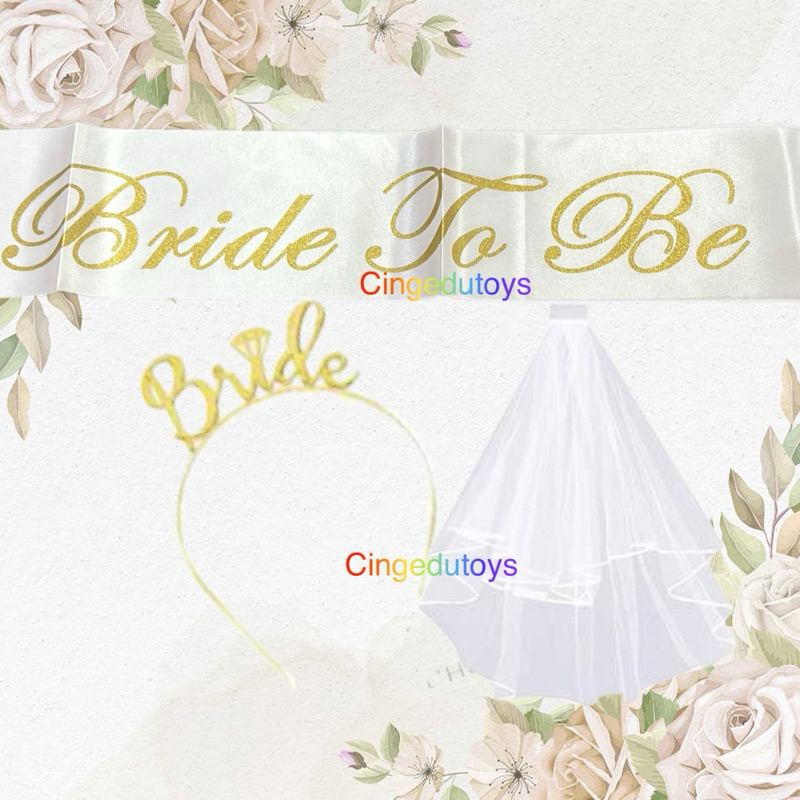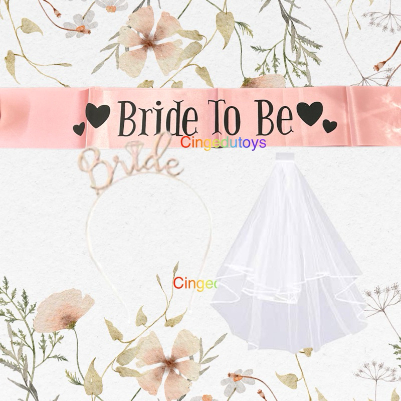 Paket 3 pcs / set bride to be bando selempang slayer untuk bridal shower bride to be Rose gold
