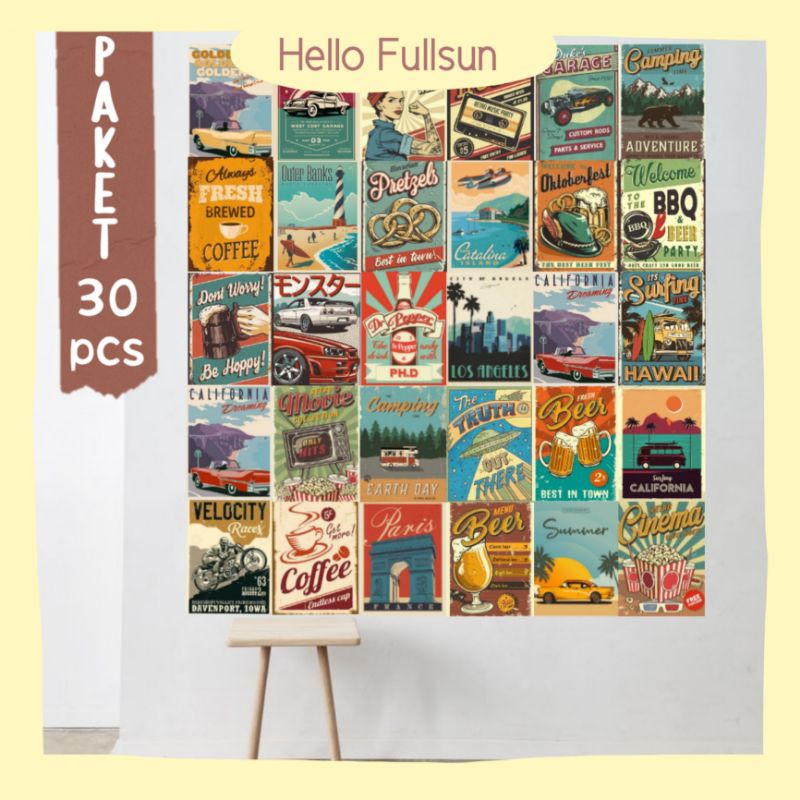 Paket 30 Pcs Poster Dinding Retro dan Vintage