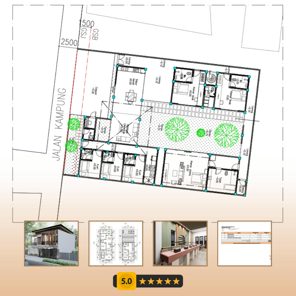Paket DESAIN RUMAH Komplit Denah 3D Fasad Gambar Kerja (Struktur Mekanikal Elektrikal Plumbing) RAB