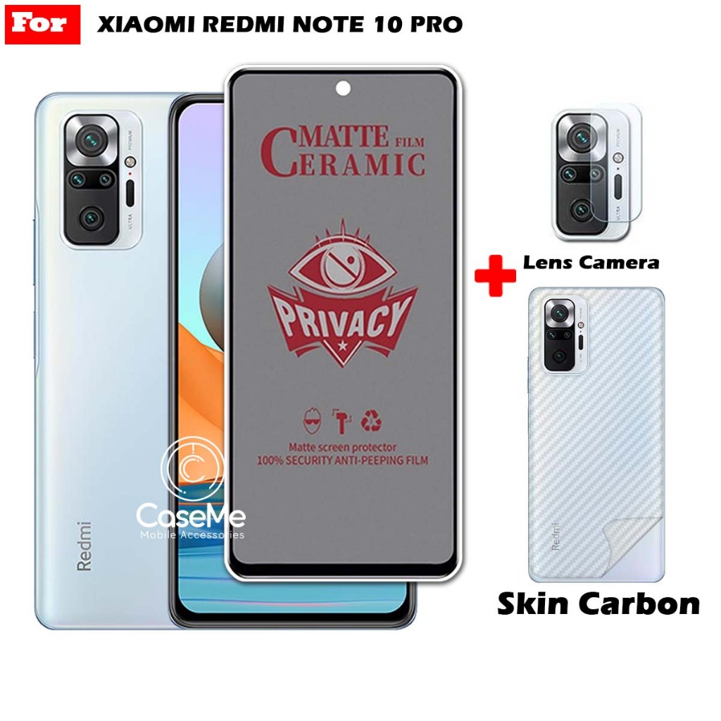 Paket 3in1 Anti Gores Layar Privacy Xiaomi Redmi Note 10 10 5G 10 Pro 10S Free Tempered Glass Camera dan Skin Carbon