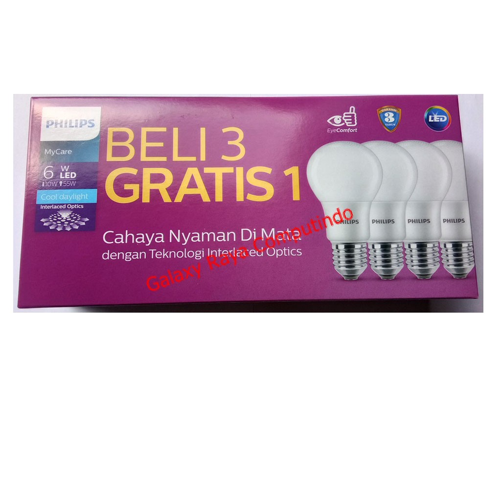 Paket 4 Lampu LED Philips 6w Bohlam philip 6W 6Watt Mycare