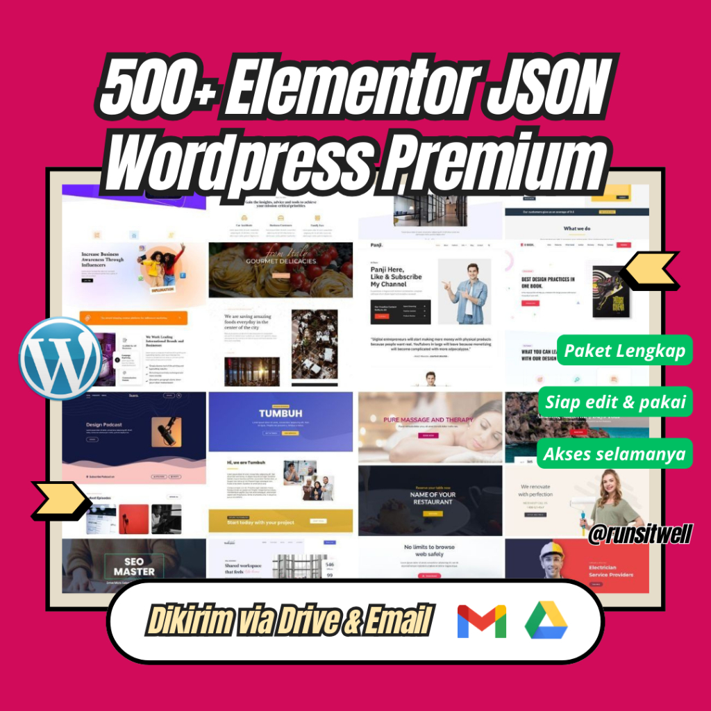 Paket 500+ Template Wordpress Elementor Format JSON Premium | Landing Page Ecommerce Portofolio Agency Bisnis