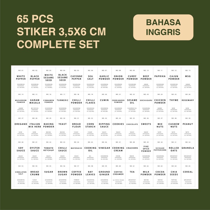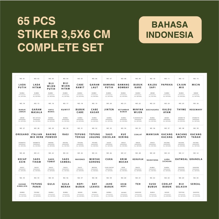 Paket 65 pcs Label Bumbu Dapur Ukuran 3,5x6 cm Stiker Waterproof