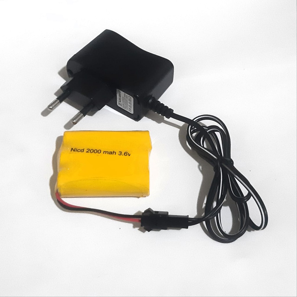 Paket Adaptor Charger dan Baterai Mobil Remote Control RC 3AA Ni-Cd 3.6v - 2000mAh Socket Hitam 2pin Batre Rakit 3 Soket Hitam 3.6 Volt