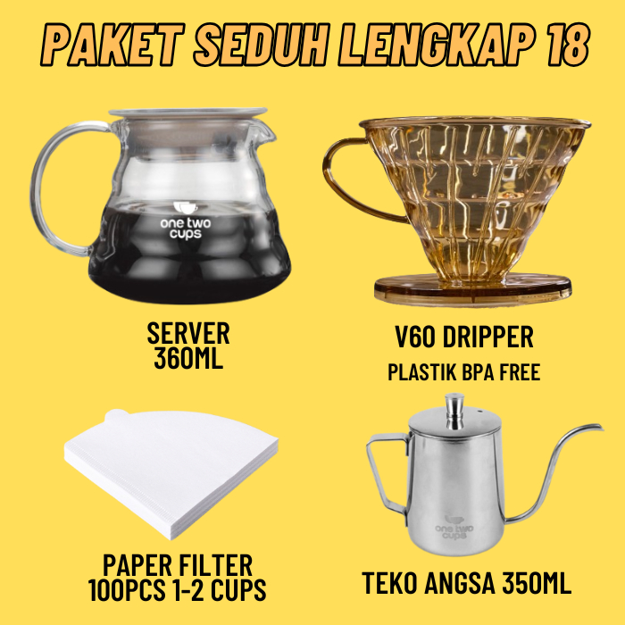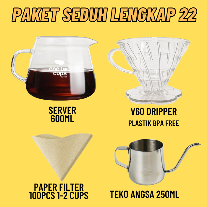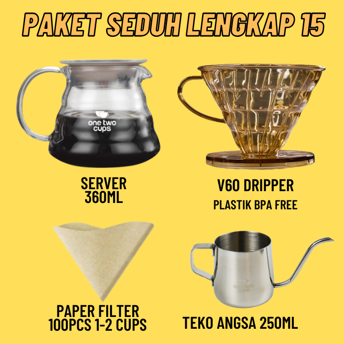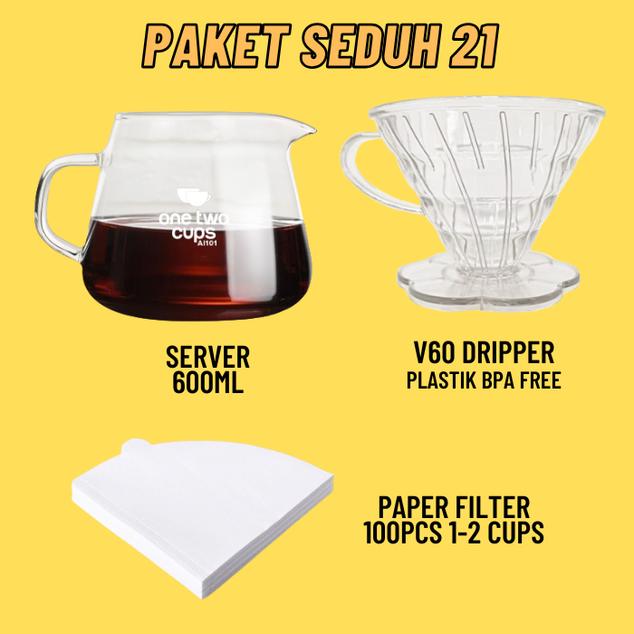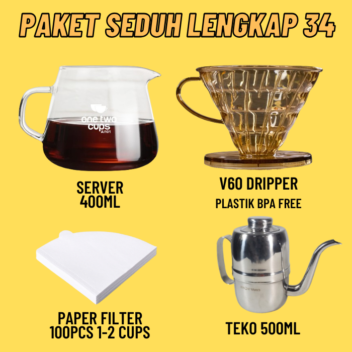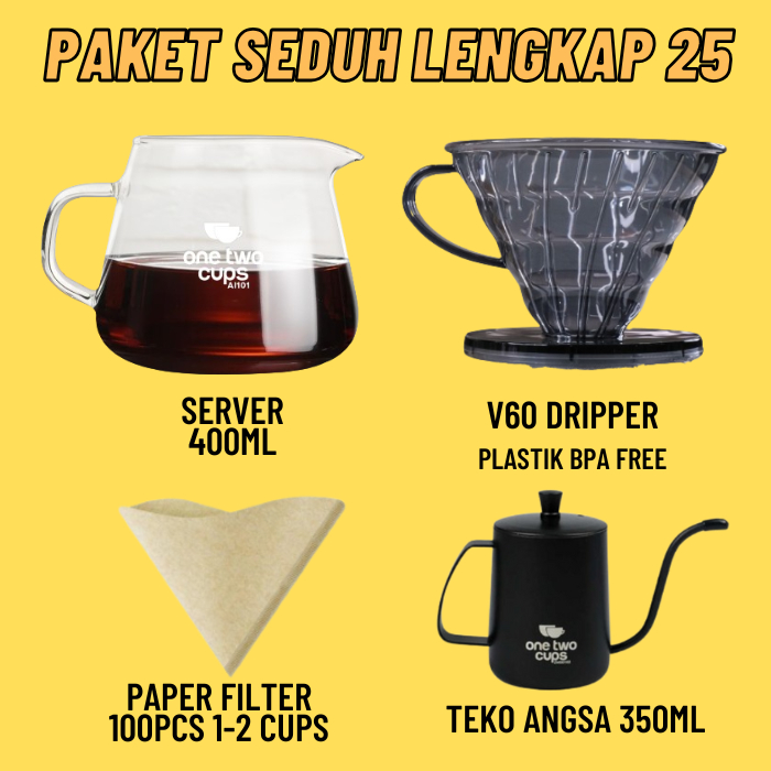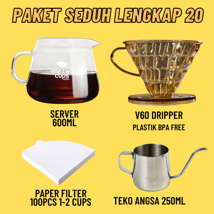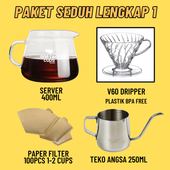 Paket Alat Seduh Kopi Manual Brew V60 + Dripper Drip Coffee Maker Teko Leher Angsa Gooseneck Server Kertas Paper Filter
