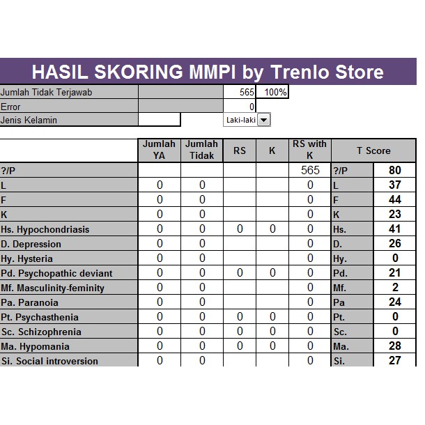 Paket Alat Tes Psikologi MMPI dan Aplikasi Skoring MMPI ORIGINAL