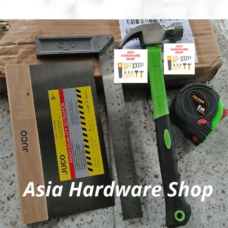 Paket Alat Tukang Skrap Juco 8" - Siku Meter 10" - Palu 8 Oz - Meteran 5 Meter